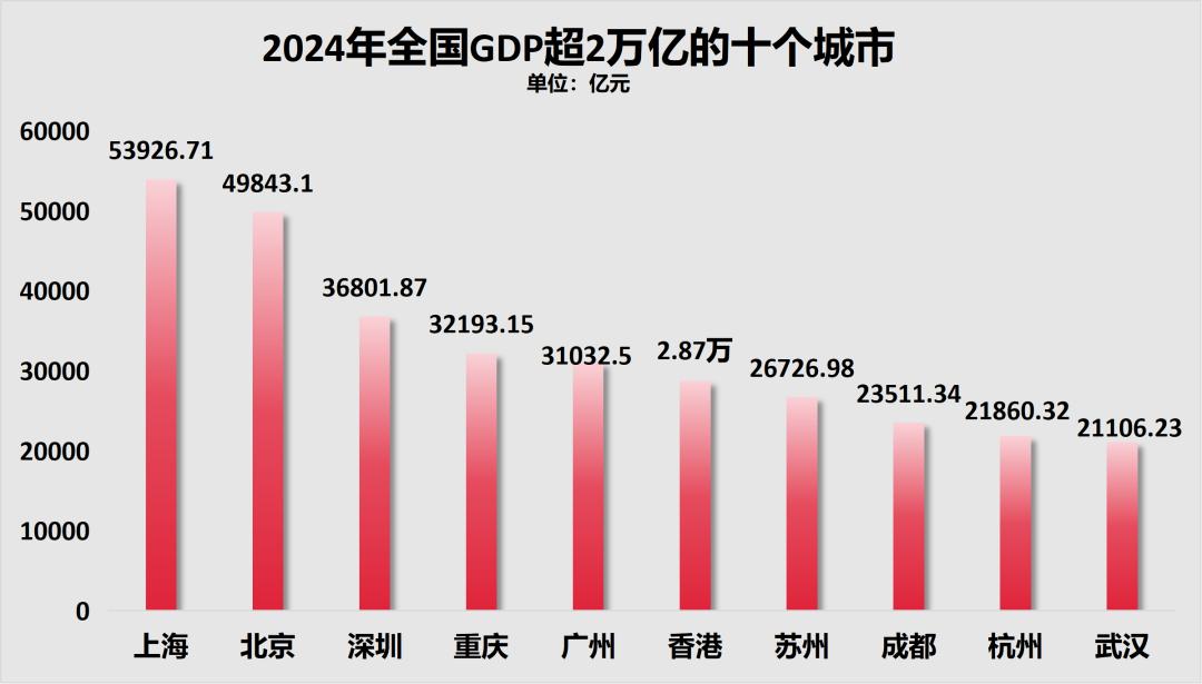 必须要抬高,本号认为,未来十年2万亿应该视作一个门槛。目前,全国GDP超两万亿的有10个城市,上海、北京、深圳、重庆、广州、香港、苏州、成都、杭州、武汉。