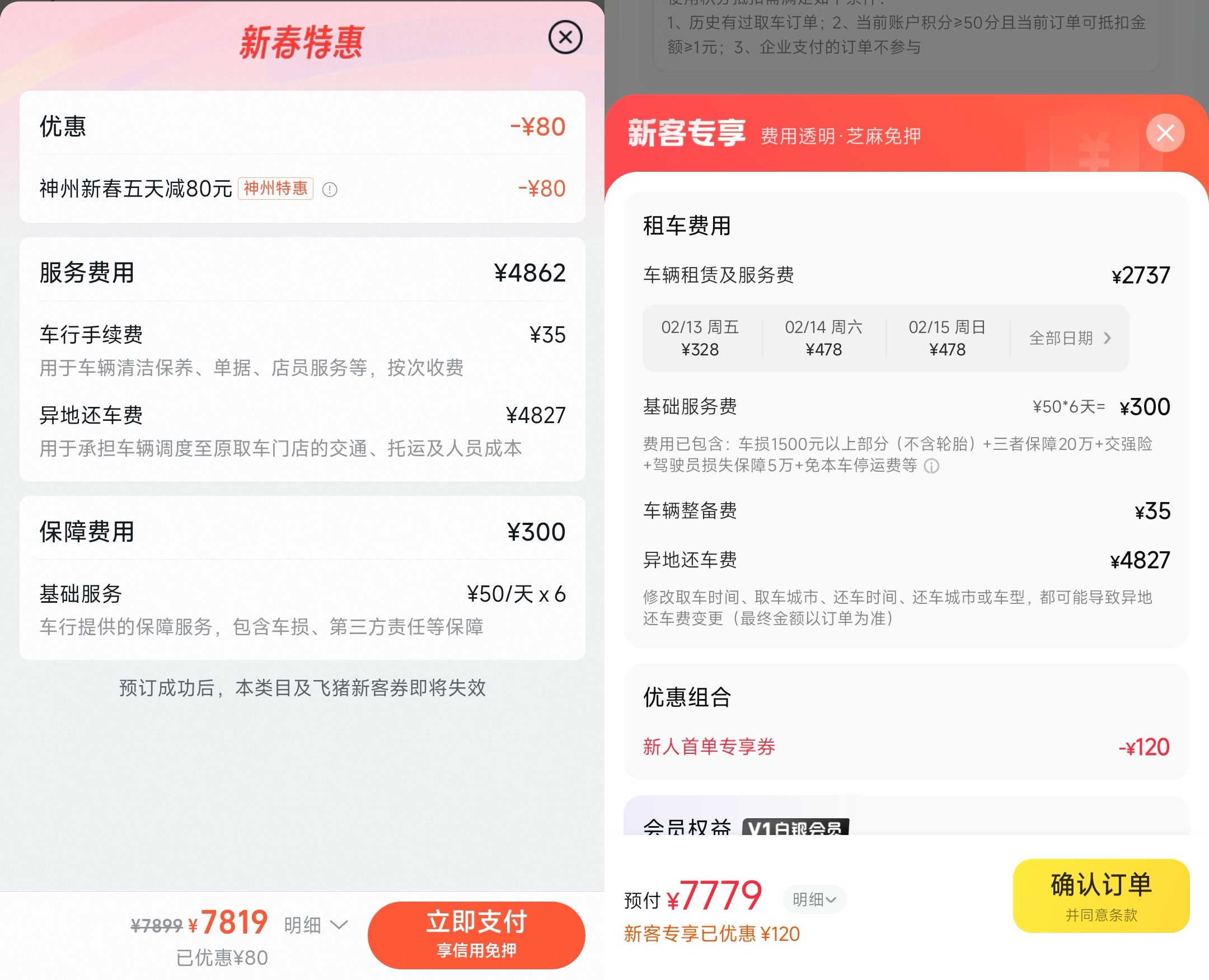左:飞猪旅行APP|右:神州租车APP
