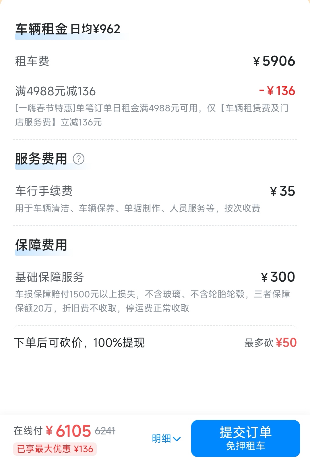 需要指出的是,无论是自营平台还是第三方,除了租车费用之外,明细中还会提供基础保障服务费、保险费、手续费等其他费用,但“基础服务费”不等同于“全险”,它大概率只涵盖了部分基本的保障范围,而且还有相关的押金、信息认证等细节,电车通建议用户在提交订单前,务必点开费用明细,逐项确认,以保障自身的权益。