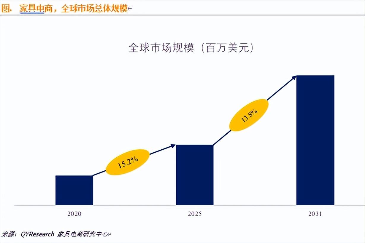 据QYResearch报告预计,2031年全球家具电商市场规模将达到3097.7亿美元,2025-2031年复合增长率CAGR为13.8%。Wayfair、Amazon、IKEA、La-Z-Boy、淘宝、京东等代表性家具电商平台及企业,纷纷加速家居产品的线上化进程。