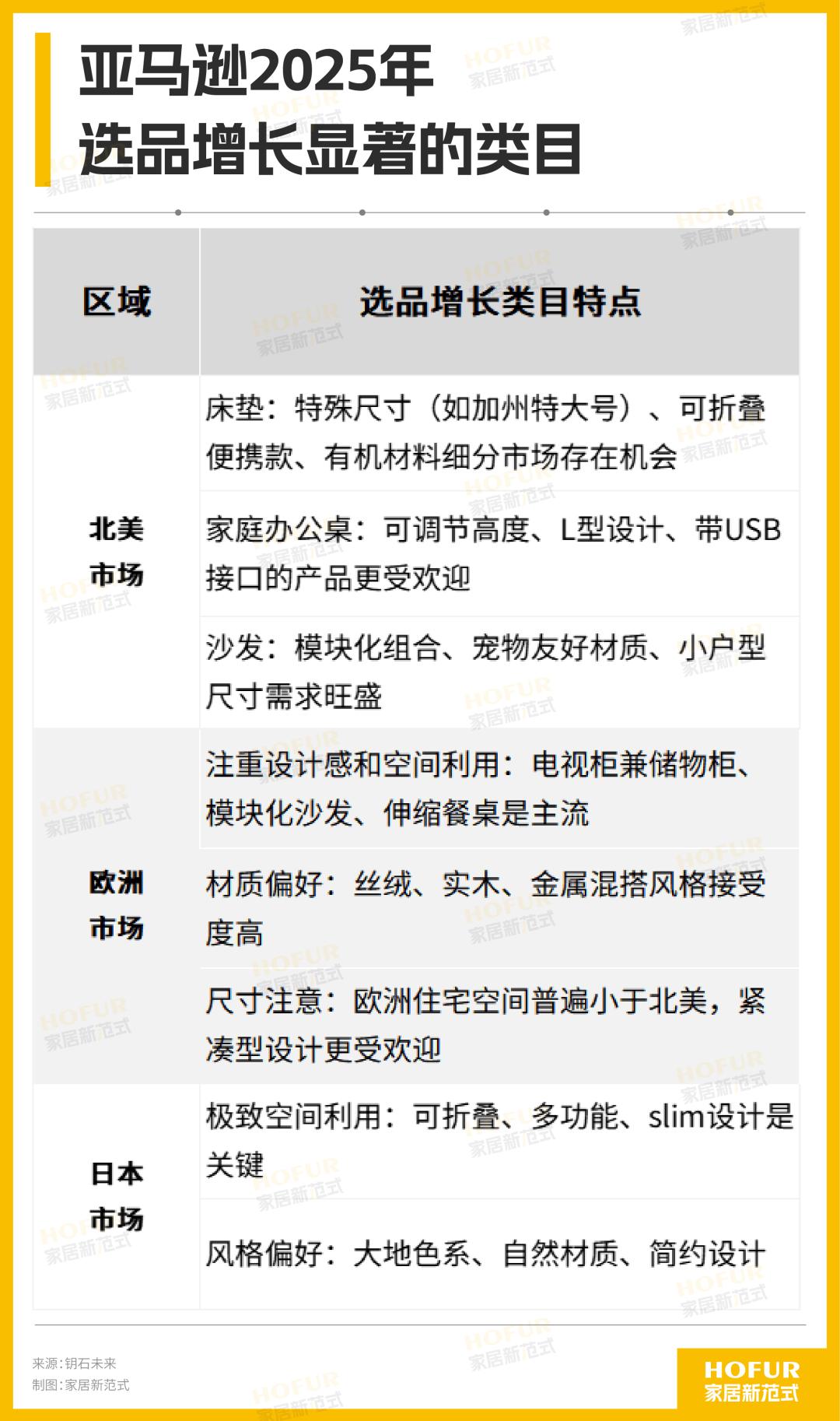 合适的选品和在地化发展,是企业制胜跨境电商的重要法宝。从电商渠道增长的家居类目看,亚马逊2025年的选品数据揭示了不同国家和地区的市场喜好: