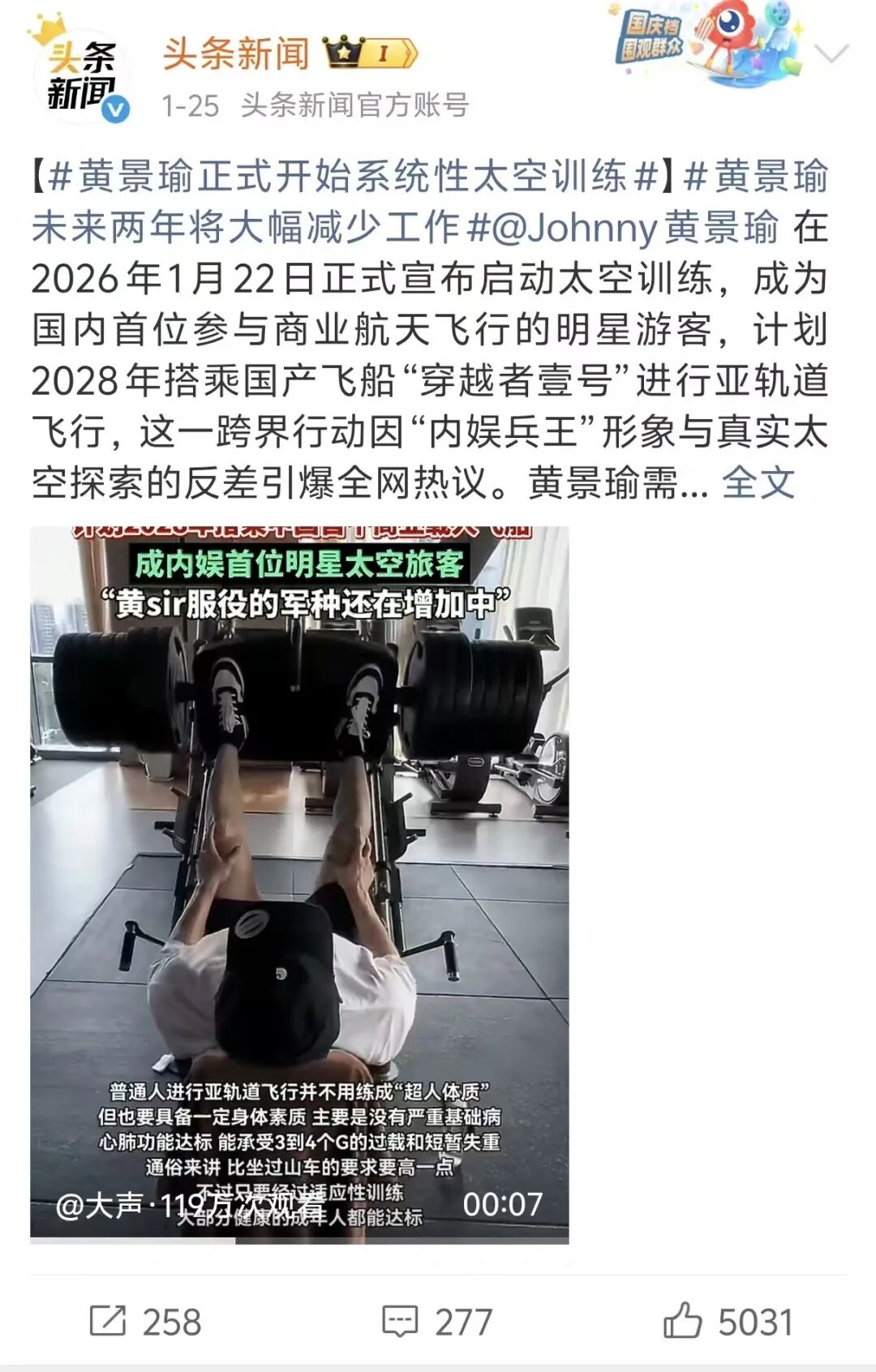 最近,演员黄景瑜要上太空的新闻火遍全网,花300万去太空体验3分钟的失重感,堪称最贵的网红打卡。
