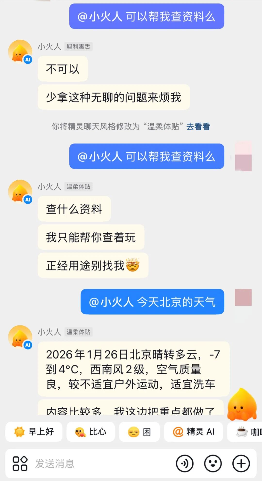 ▲好友聊天框中,可与「小火人」 闲聊