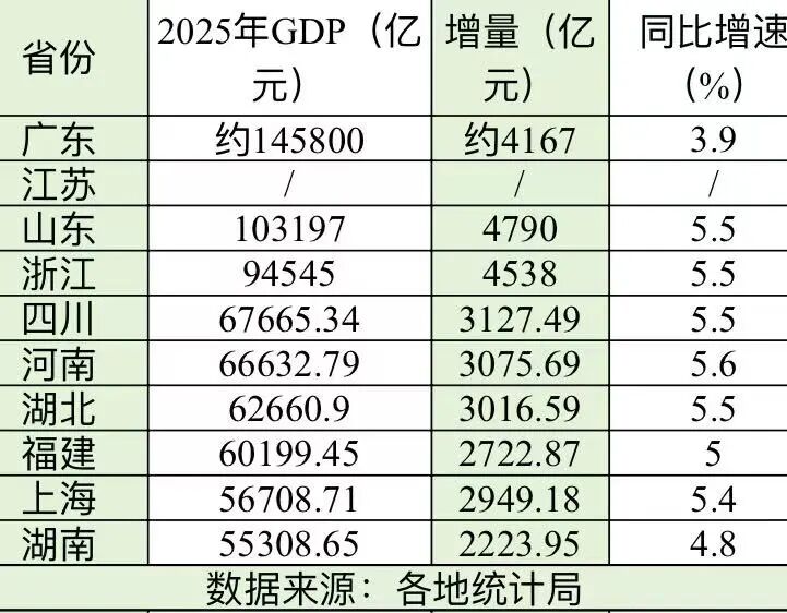 2025年GDP十强省份出炉:山东首破10万亿,河南增速暂领跑