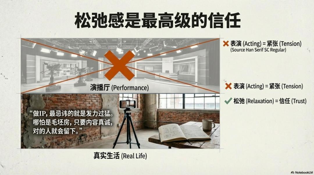 哪怕背景是工业风的毛坯房,哪怕你说话有口音,只要你的内容是真诚的、有能量的,对的人自然会留下来 。