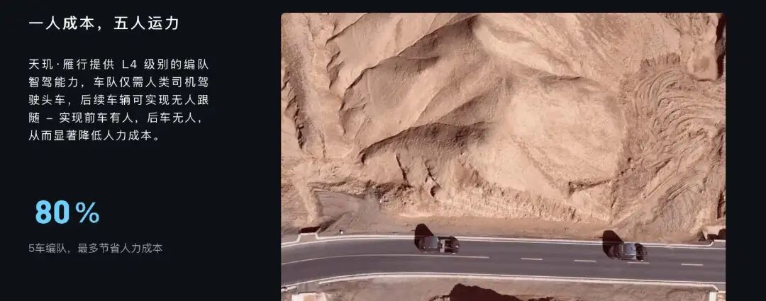 具体模式就是整个编队头车有人,后续跟多辆无人卡车。