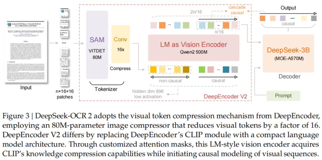 通过这种设计,DeepEncoder V2实现了两级级联的因果推理: