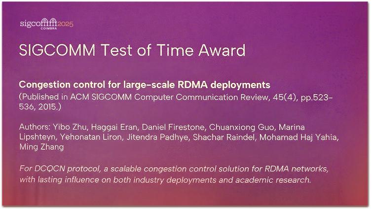 这期间他奠基了RoCE(基于融合以太网的远程直接内存访问)技术,这项技术致力于实现高速、低延迟的数据传输,是现代大规模AI基础设施的关键网络协议,也是NVIDIA(前Mellanox)⾼速通信过去⼗年来使用的标准协议。