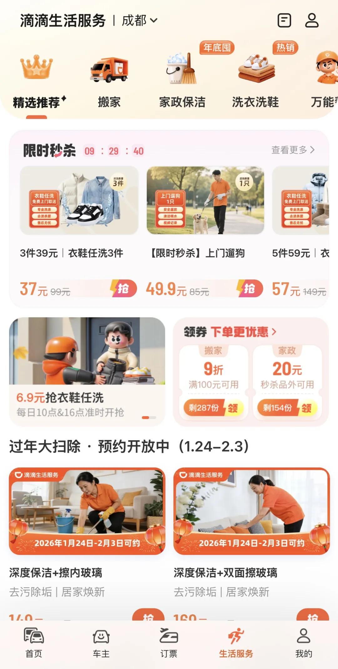 目前,滴滴选择与少量家政服务供应商合作,上线家政保洁、衣鞋清洗等六个类目下的300多个可选服务商品。