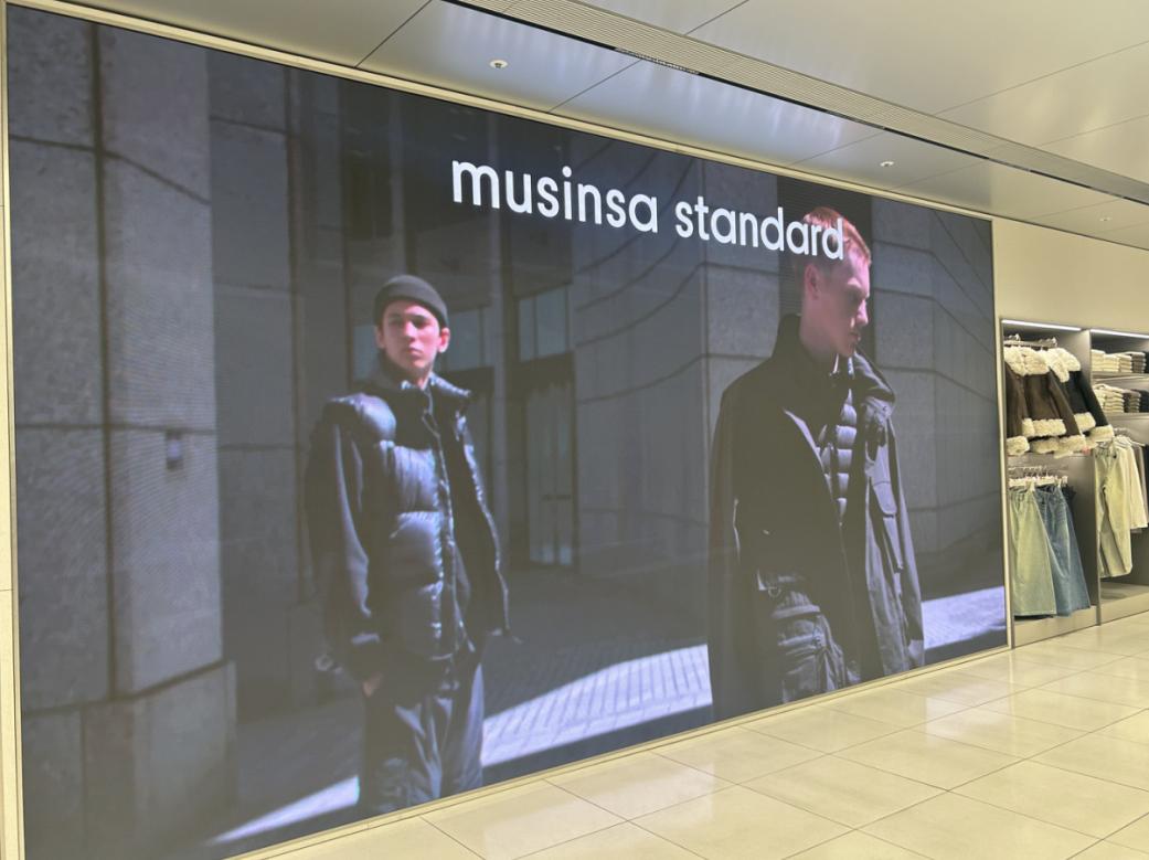 日均客流量超50万人次的上海淮海中路街区,成为Musinsa Standard撬动中国市场的首站。巨大的落地橱窗里,代言人韩素希身着羽绒服的海报十分抢眼,选择核心商圈开设1400多平方米大旗舰店,这一策略与早期优衣库、ZARA通过核心商圈的标志性点位快速建立品牌认知的打法类似。