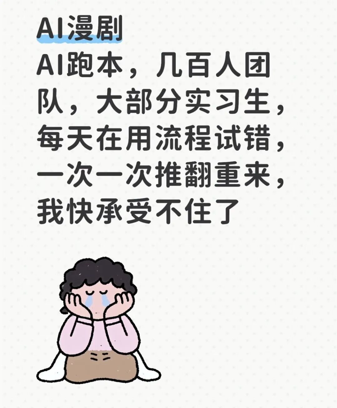 至于大型工作室解决抽卡问题的方法也足够简单粗暴,就是雇佣大量“抽卡师”没日没夜地跑AI生成可用画面,例如前面说到的酱油文化,如今目标产能是每个月制作100部AI漫剧,平均一天上线3部,要实现这个目标公司只需要把规模扩张到1000人左右即可。