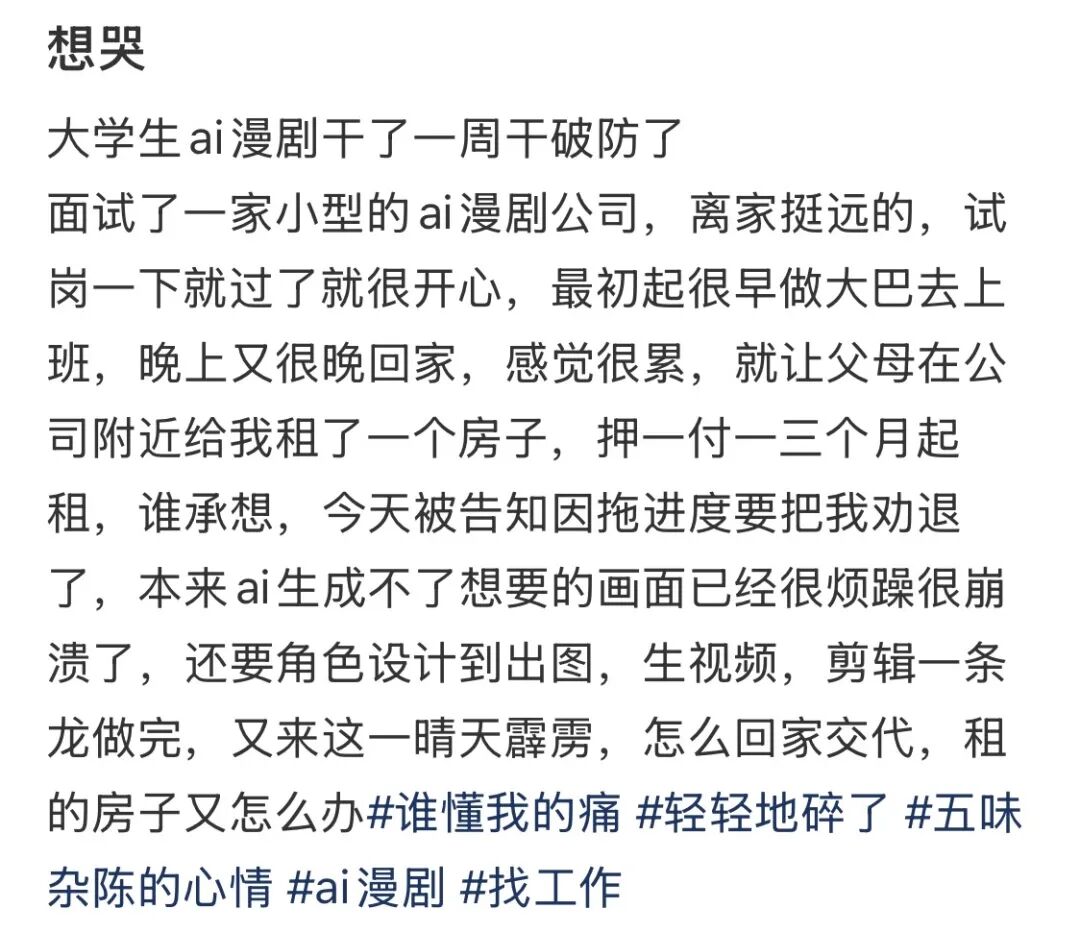 去年全网接近5万部AI漫剧上线,足以说明如今AI在漫剧上的产能有多强,然而这个看似可以自主运转的财富机器,一旦细化到中小团队或者个人工作者,画风就开始变成了一种黑镜式的赛博工种。