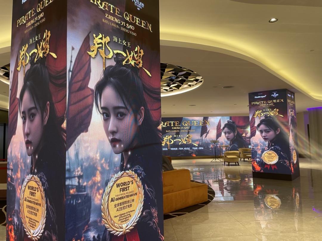 再比如这部由新加坡团队出品的70分钟长片《海上女王郑一嫂》,号称全球首部获政府批准在商业院线公映的AI电影,然而实际观影体验更像是一部长达70分钟的动态PPT真人秀。