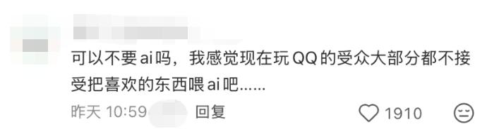 不过,这次QQ秀回归也引发争议。一方面是关于AI这一功能。有网友表示“不要AI,AI只会让曾经的家人越来越讨厌”;还有网友认为,“感觉现在玩QQ的受众大部分都不太能接受把喜欢的东西喂给AI吧……”。