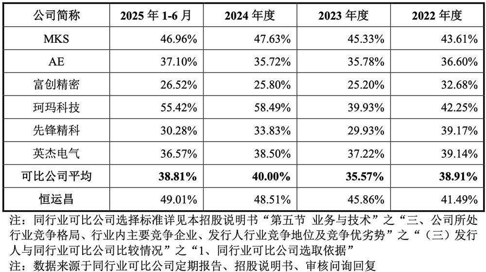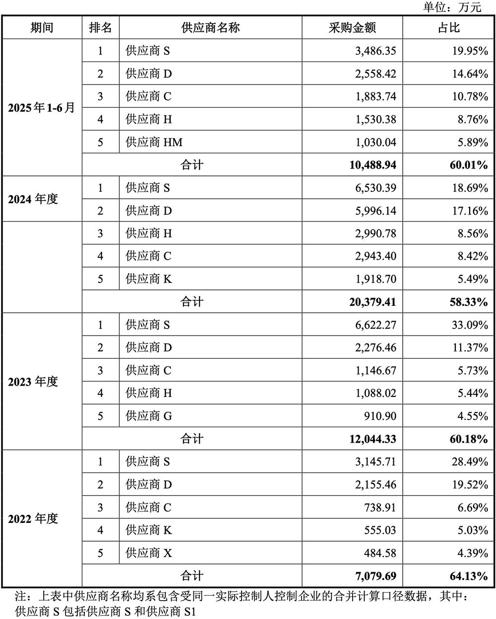 2022年、2023年、2024年、2025年1-6月,恒运昌前五名供应商采购金额占比分别为64.13%、60.18%、58.33%、60.01%。