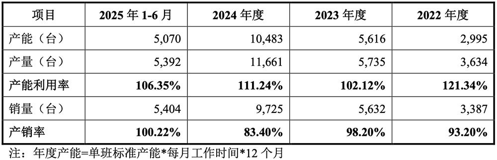 2022年、2023年、2024年、2025年1-6月,恒运昌产能超负荷运行,产能利用率分别达到121.34%、102.12%、111.24%、106.35%。
