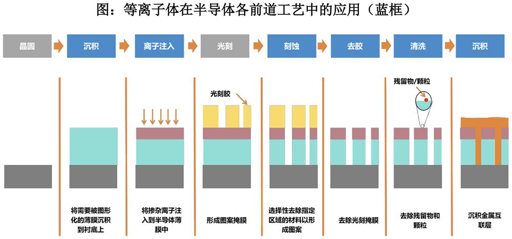 等离子体工艺广泛应用于薄膜沉积、刻蚀、离子注入、清洗去胶、键合等芯片制造的重要环节,并随着先进封装技术的发展应用于更多工艺环节中。