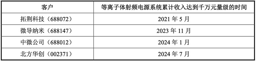 报告期内,该公司已稳定批量供应拓荆科技PECVD设备,是拓荆科技2024年度第一大等离子体射频电源系统供应商、前十大零部件供应商。