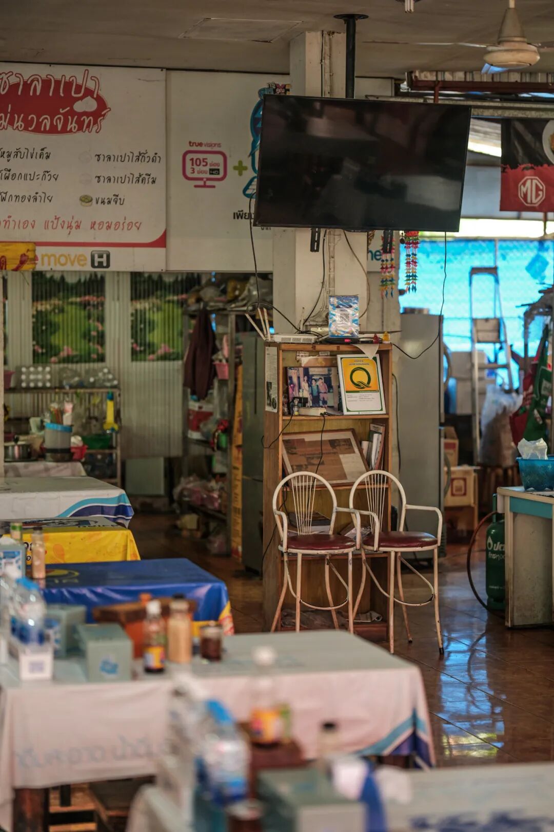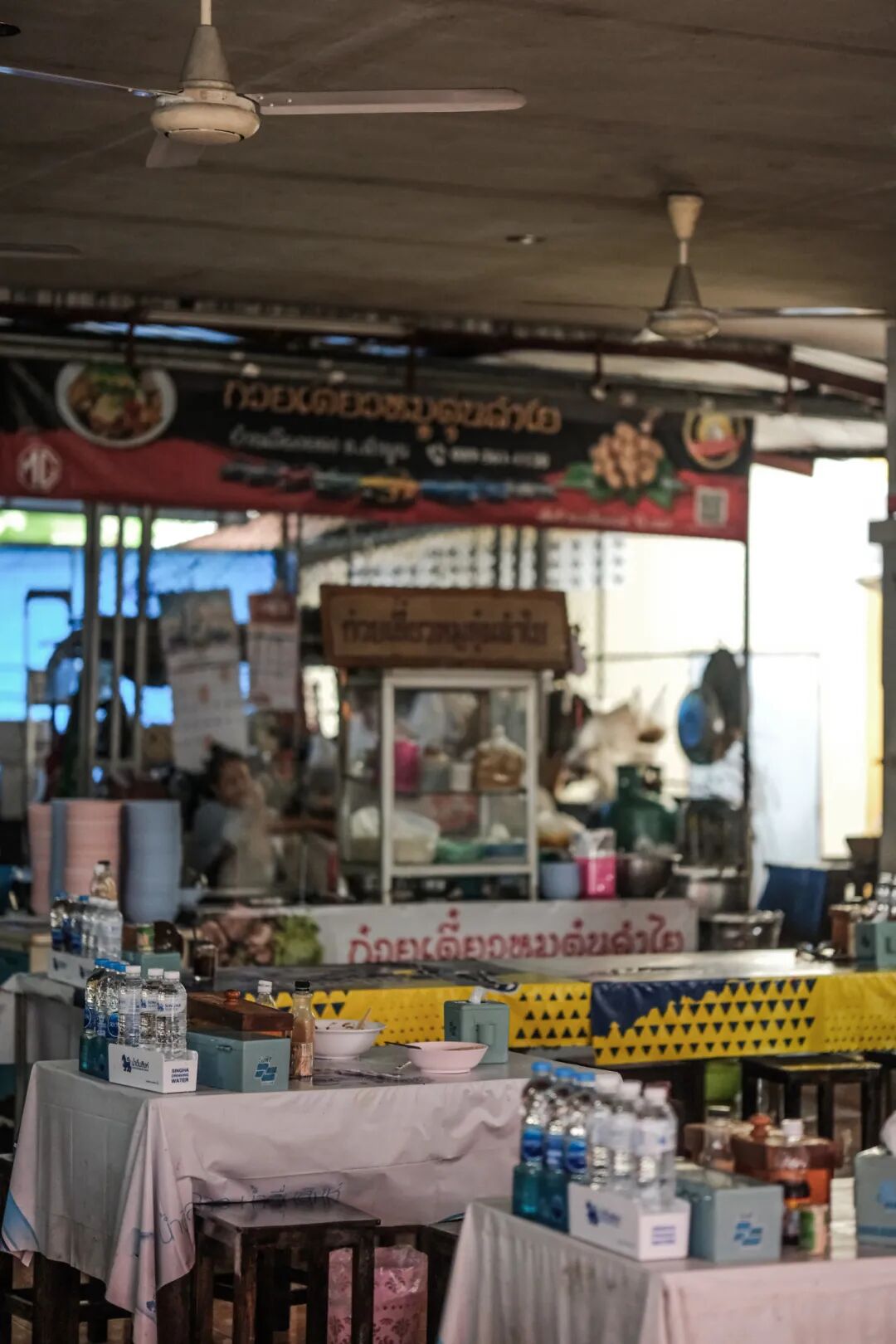 出站后第一站:打车去吃面,朋友推荐有一家船面,碗小却料足,售价一碗 2 泰铢,折合人民币只需 0.4 元。于是花了几十人民币打了车去寻,车在定位的地点停下,面馆却没有见到。找了图片问司机,司机是个本地小伙,老实憨厚,却对当地不大熟悉的样子。问了两遍也说不知道,就下车去问沿街店铺的老板们,才得知是搬家去了不远处。一行几人便在日头下缓步徐行。街上有复古的车辆停靠,学校里课间闲暇嬉笑打闹的孩子,这些日常点滴,为南奔增添了几分鲜活的生活气息,让这座小城显得更加亲切而生动。