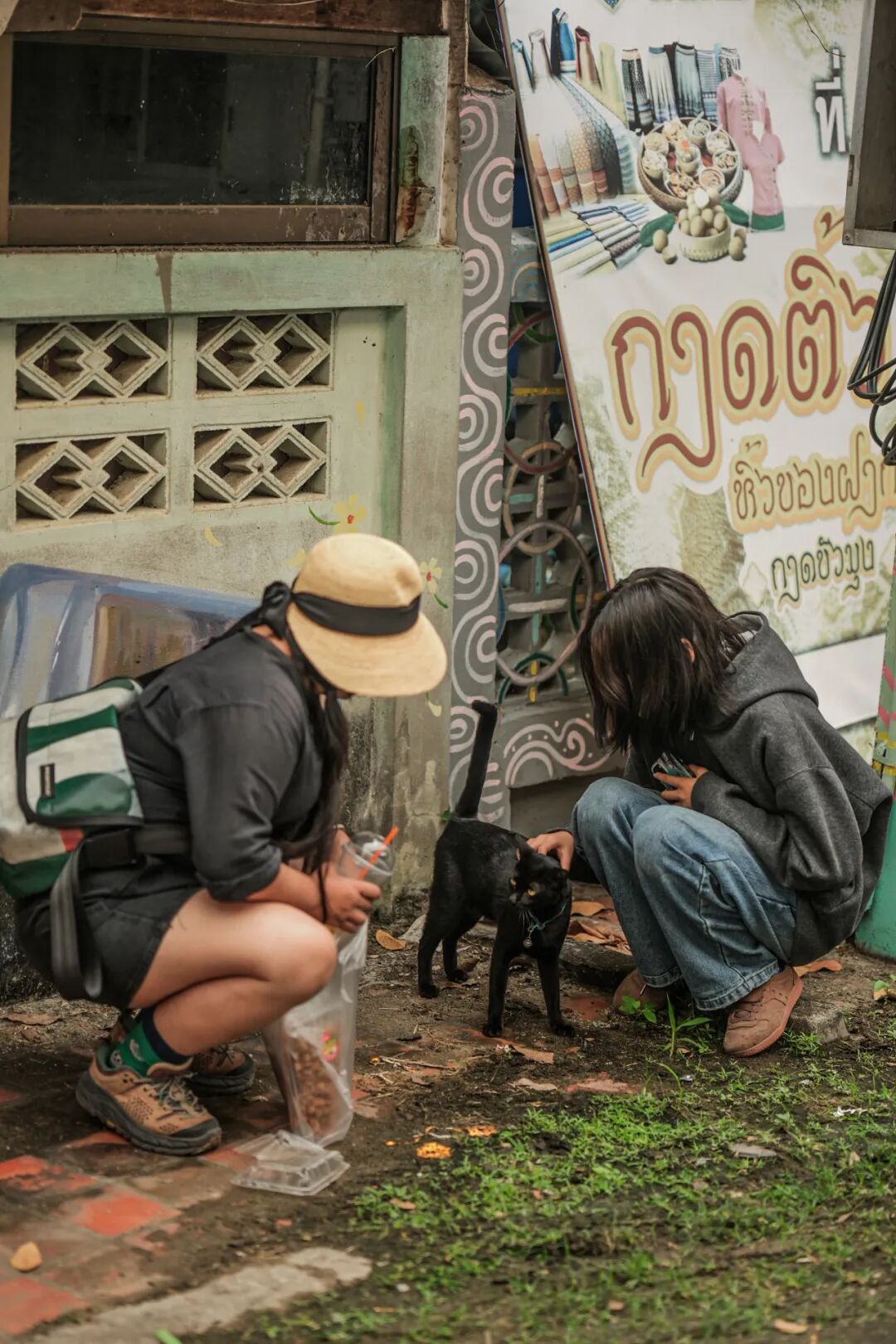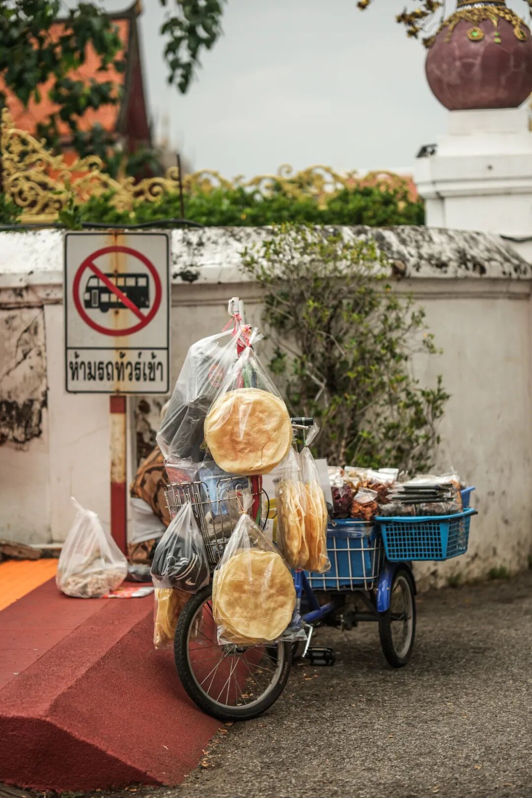 龙眼面馆到哈里奔猜寺,只需走一段路,若是坐车就要绕行,跟司机说让他直接去寺庙等我们,我们就一路散步晃悠着去寺庙,沿途有一些小店铺,随时都可走进去逛一下。也有本地的集市,不过时间尚早,没有太多摊位可以逛。倒是路边的小猫很有趣,大家还停下来和猫玩了一会儿。