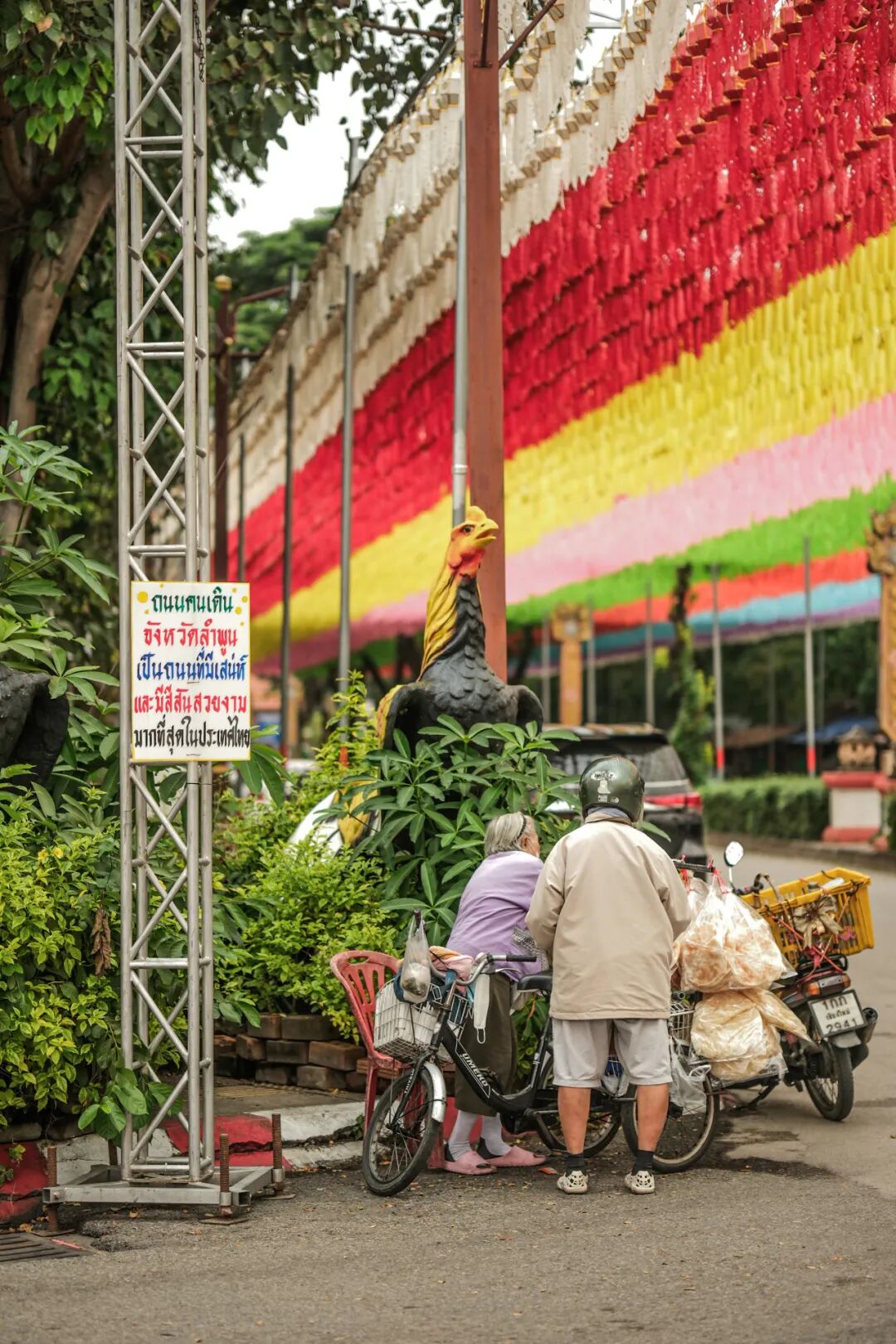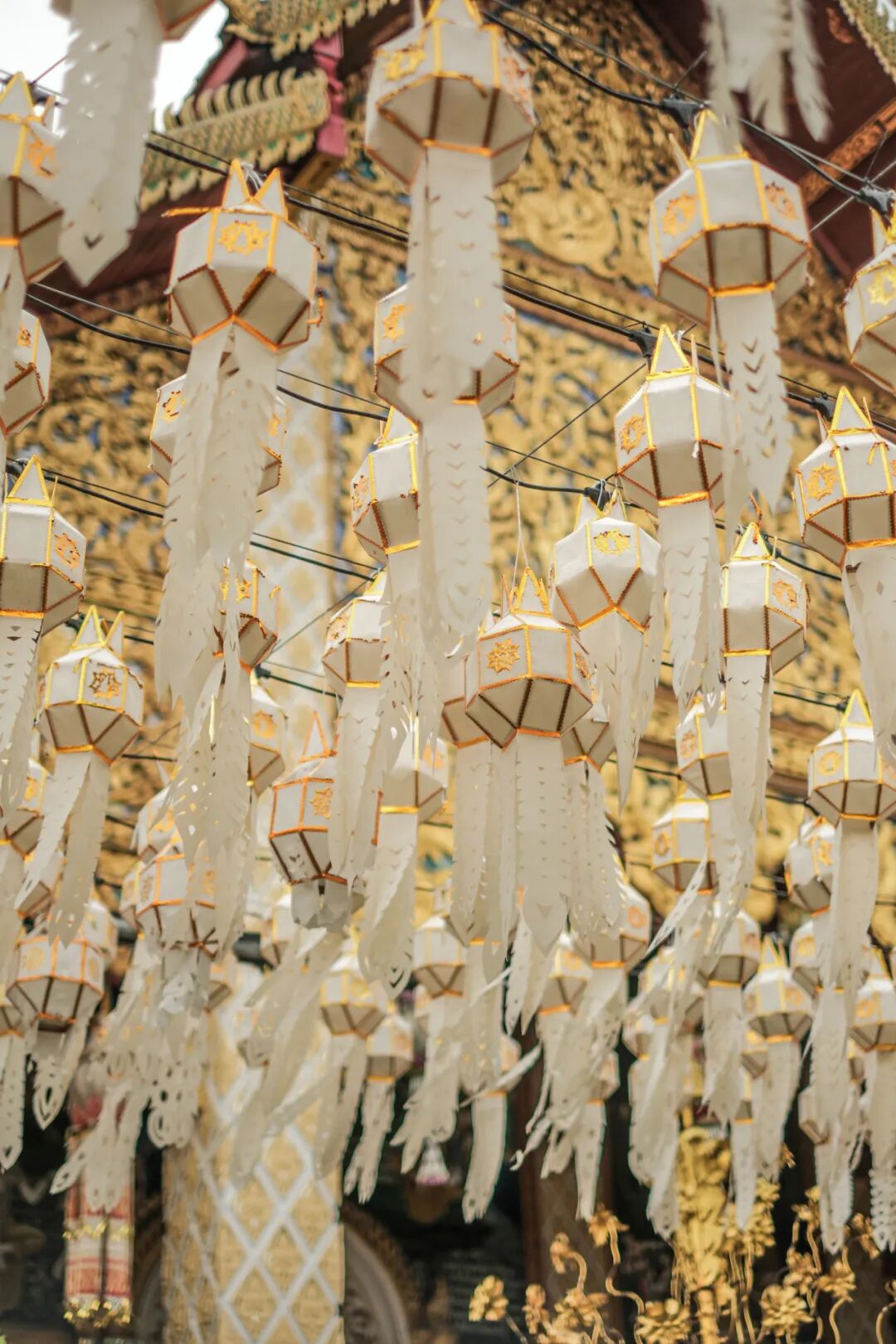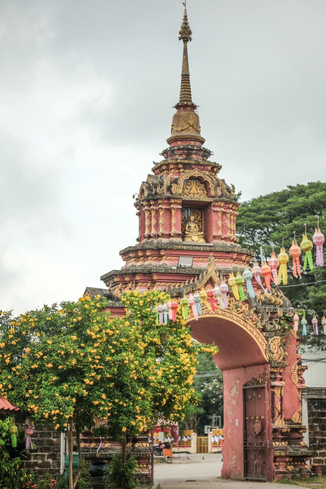 每年10月上旬至11月下旬,南奔都会举办盛大的灯笼节(Yi Peng Lantern Festival),成千上万的灯笼点亮哈里奔猜寺及周边区域,将古老的寺庙装点成梦幻的光之世界。这个传统节日不仅是对佛教文化的传承,更是南奔人民对美好生活的祈愿。我们到达南奔时,满街仍有各处悬挂的灯笼随风飘荡。