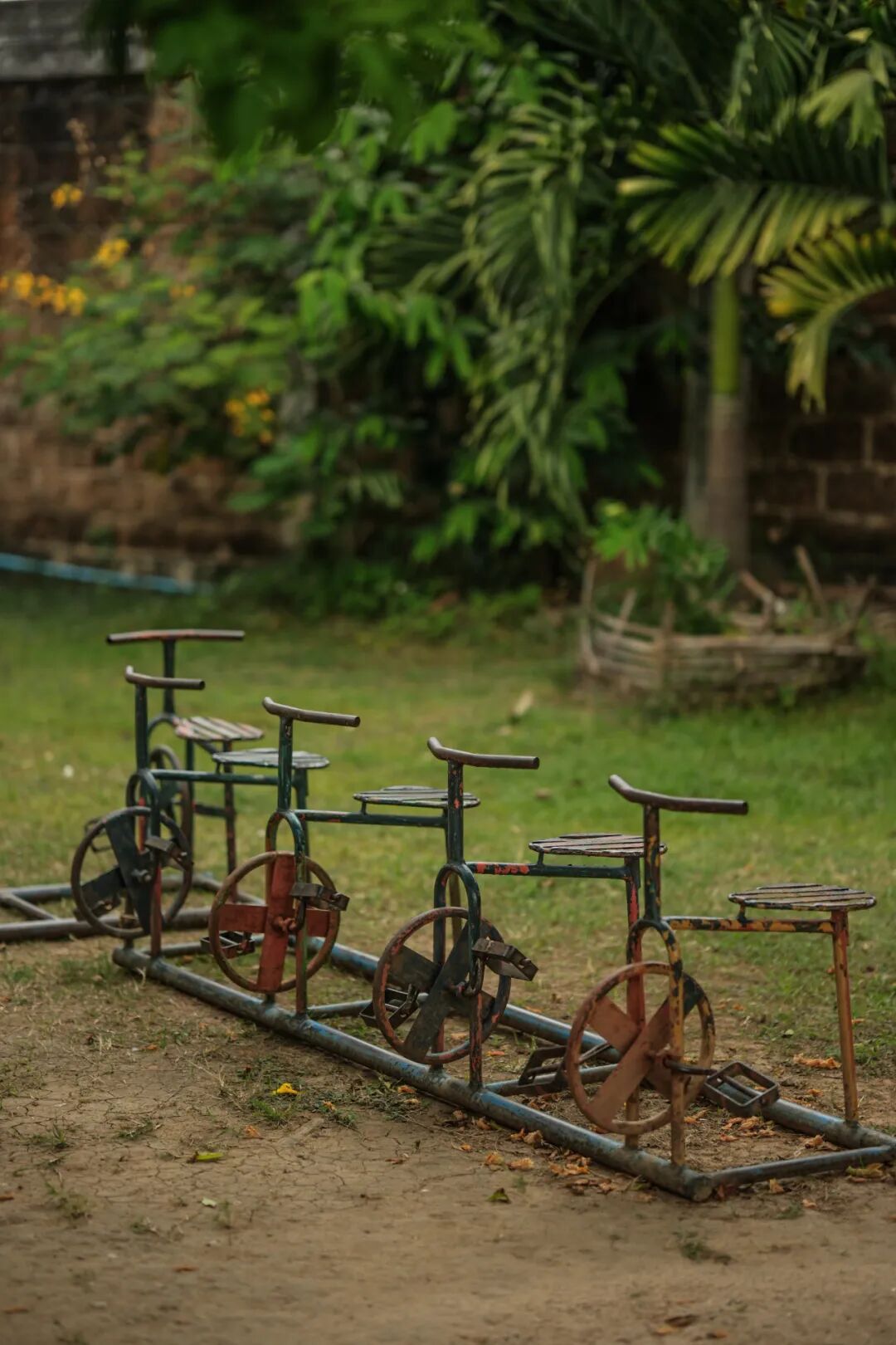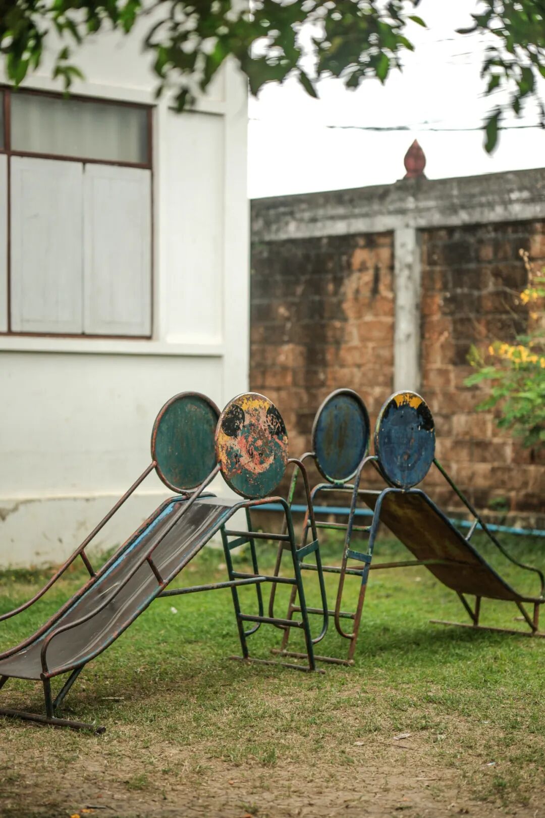 离面馆不远处,有一所不知名的寺庙,里面的草坪上有一些儿童游乐设施,看四下无人,就干脆一起玩耍起来。嘻嘻笑笑间,突然有人走来,以为是寺庙来人驱赶,又纳闷会是什么未知的情况。结果那人一开口,竟是早前载我们的司机。