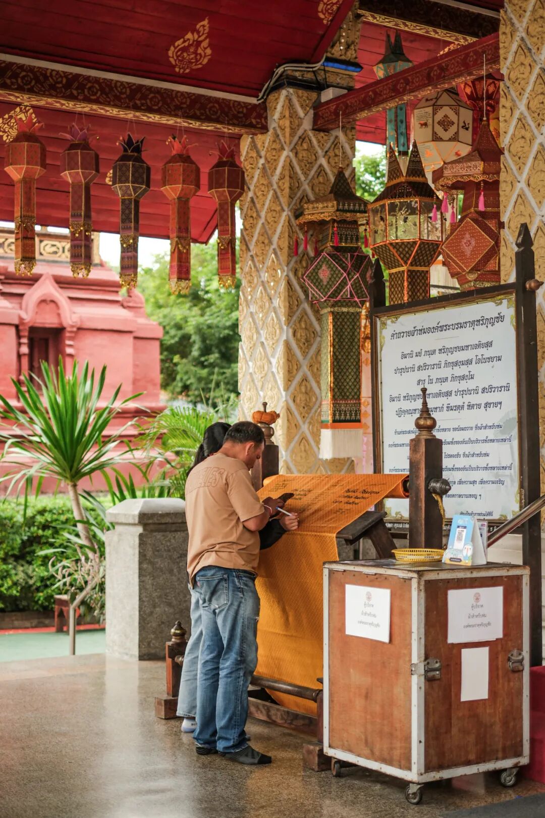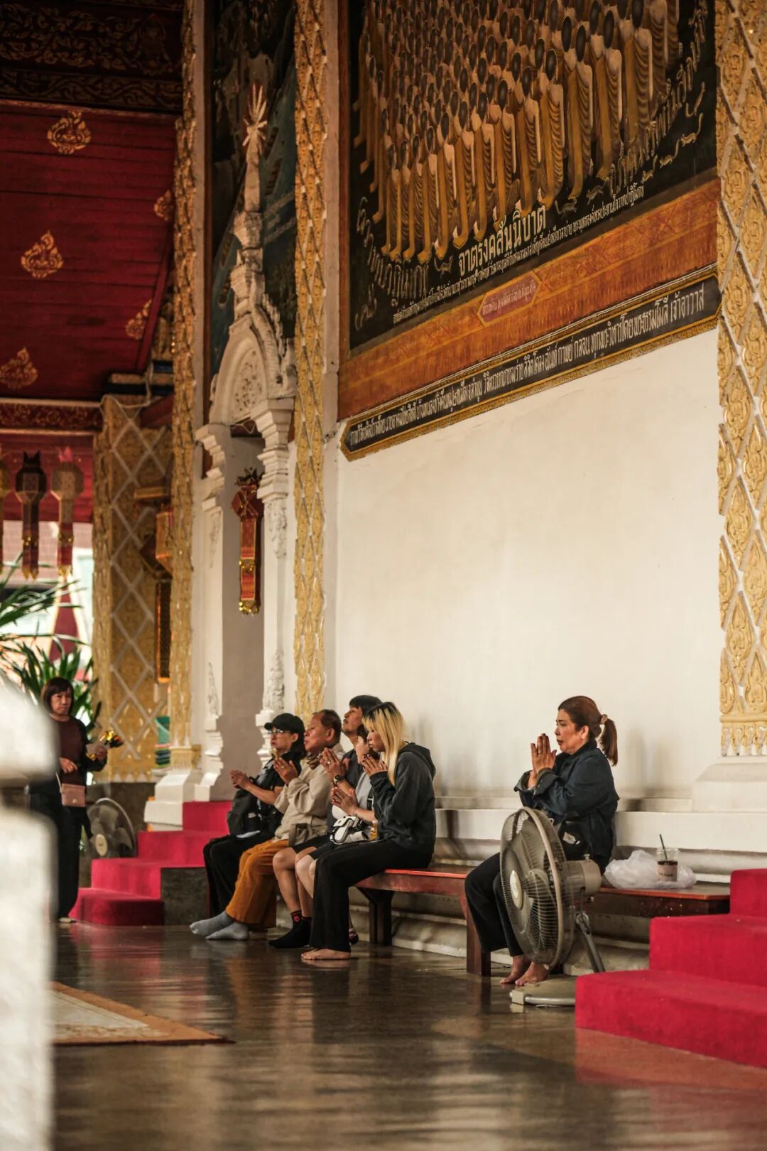 南奔的街上游人不多,在哈里奔猜寺的人倒是不少。大多是泰国本地人,敬香祈福、敲钟跪拜。