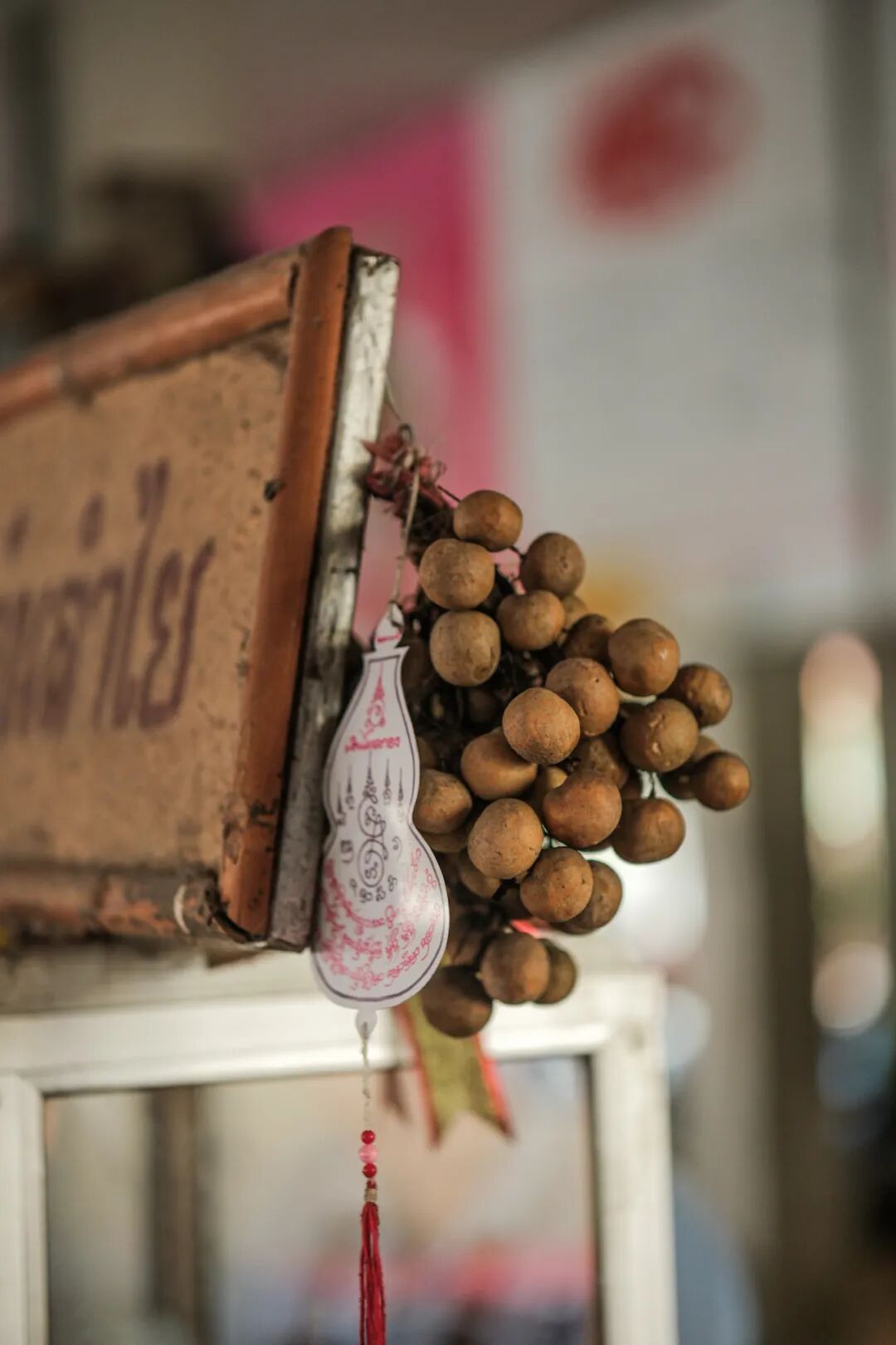 这家面馆是老店,店员大多是上了年纪的阿姨和奶奶。过了新鲜龙眼的季节,面馆门口有不同的龙眼干出售,老奶奶拿出不同品种让我们试吃,能吃得出不同品种带来的不同风味。除了龙眼干,还有特别的龙眼蜜,买上两袋,就拎着去哈里奔猜寺。