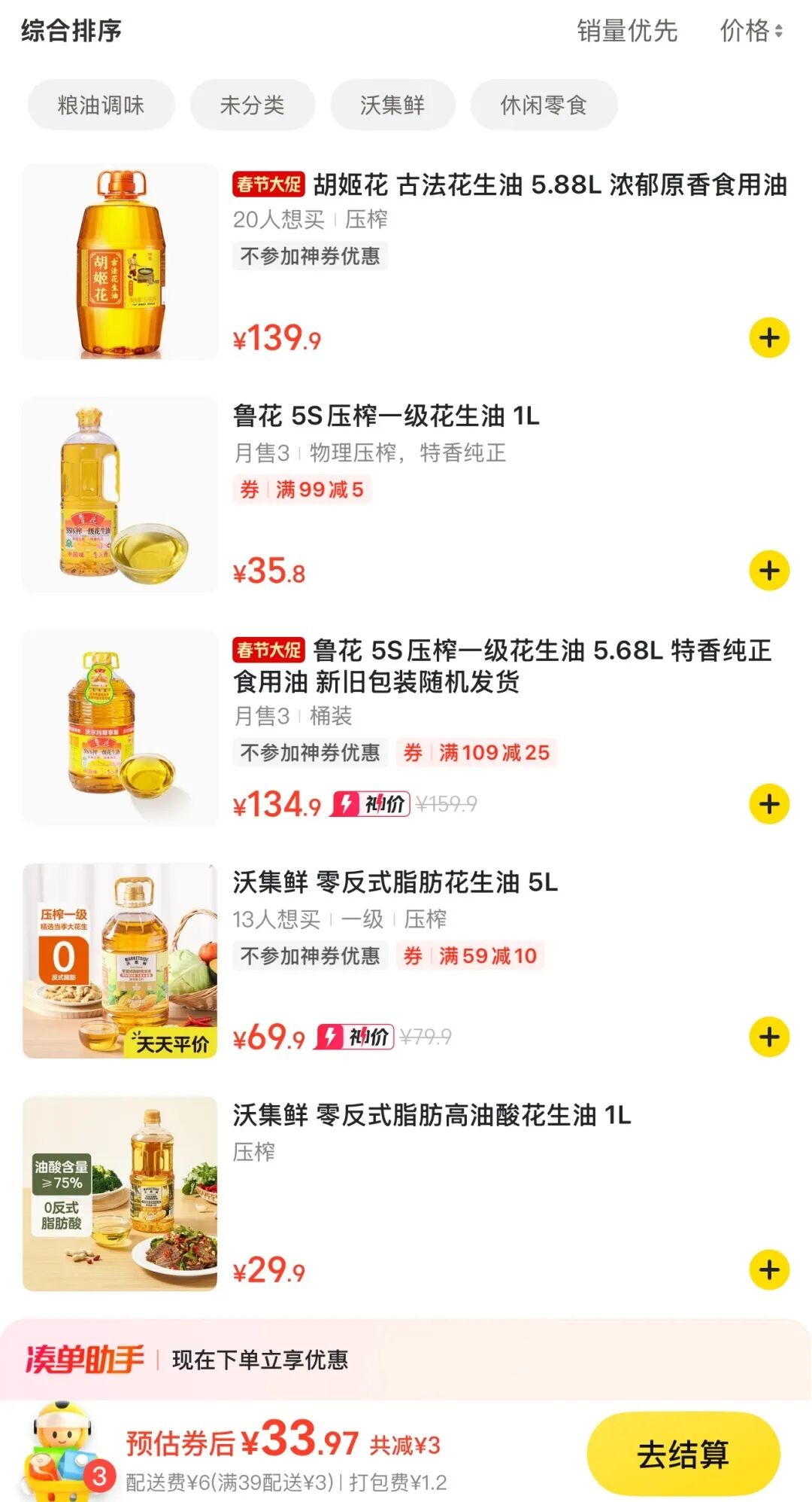 但以上种种,并不能构成沃集鲜的核心竞争力。以上图的花生油为例,当我想购买一瓶1L装的花生油,6块钱的差价,并不能让我从鲁花投奔到沃集鲜。因为前者显然更加专业。如果我是价格敏感型用户,可能会直接选择其他品牌或者渠道。