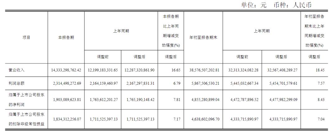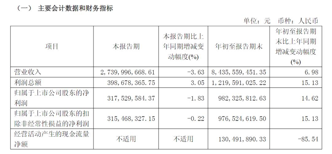 2025年前三季度,公司实现营业收入84.36亿元,同比增长6.98%;归母净利润9.82亿元,同比增长14.62%;扣非归母净利润9.77亿元,同比增长15.13%。