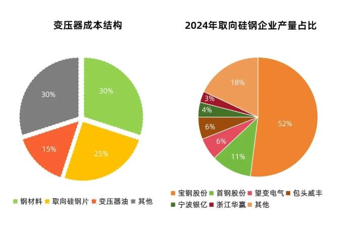 在关键特种材料领域,取向硅钢片作为变压器的“心脏”,占其成本高达25%。该行业技术壁垒极高,市场高度集中,宝钢股份以52%的绝对份额占据半壁江山,呈现“国企主导、民企追赶”的格局。绝缘材料市场规模达1305亿元,是保障设备安全运行的基石,国产替代进程正稳步推进。