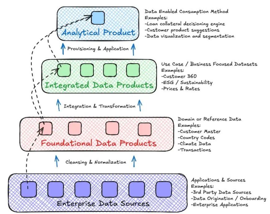 注: 与多个指代基础数据产品的术语类似,“ 集成数据产品 ”在业内也曾被使用过类似的术语,例如“ 聚合数据产品 ”、“ 衍生数据产品 ”或“ 业务数据产品 ”,正如其他社区贡献者所引用的那样(例如,此处引用为“聚合数据产品”)。