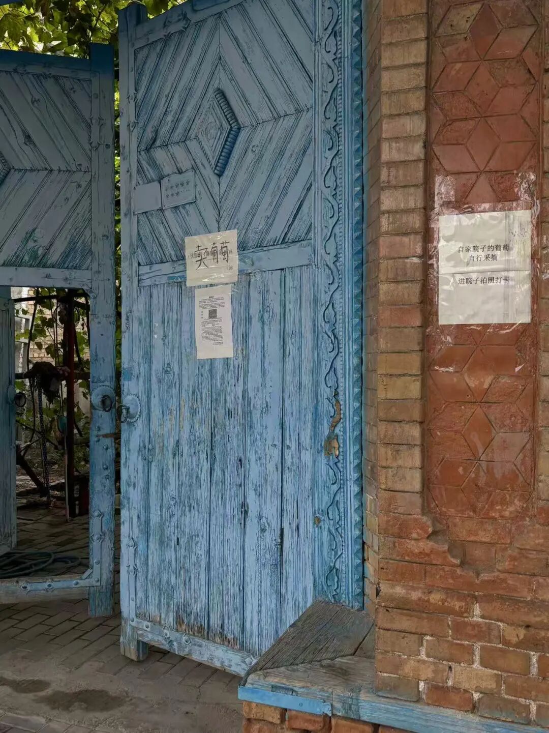 猝不及防地,我的视线被一张朴实无华的A4纸吸引——“自家院子的葡萄自行采摘”。一路走来,我早已被一个个温馨布置的庭院迷住,葡萄架几乎是标配,而这个时候,无疑都垂满了一串串饱满的果实。