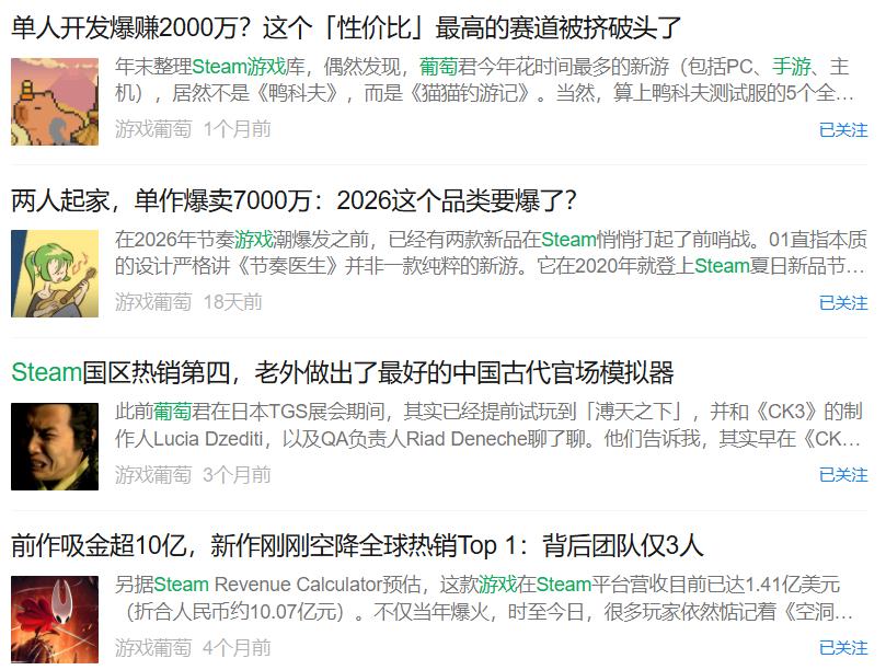 之所以绝大部分非高分的热门游戏都来自大厂或大作,是因为大厂和大作基本自带一定量的热度,在宣发渠道只要投入一定资金,基本都能超越小体量游戏的自传播影响力,形成浩大的声势。