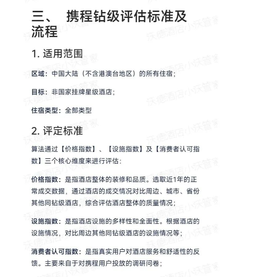 据悉,携程的钻级评估目标是非国家挂牌星级酒店,通过价格指数、设施指数及消费者认可指数三个核心维度来评估。一开始,张凯文所在的酒店还是3钻,上任后花了半年时间整改硬件、培训员工,好不容易冲上4钻,从此就像上了发条,再也不敢停。