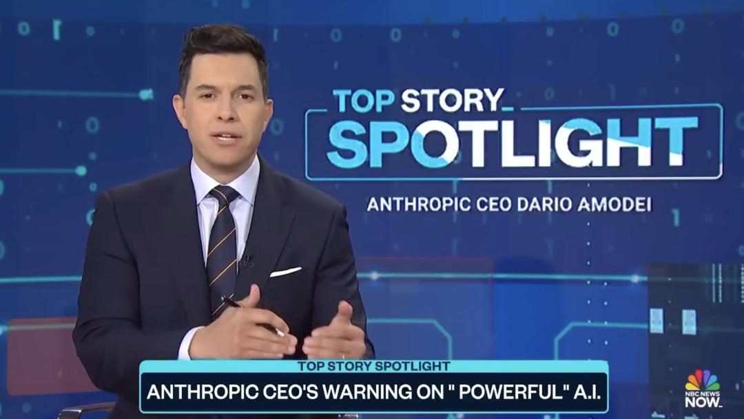 这篇文章发布后,NBC News 旗下节目《Top Story》也邀请 Dario Amodei本人出面解读,并在访谈中进一步追问他对 AI 未来的判断。完整内容我们整理并放在后文了。