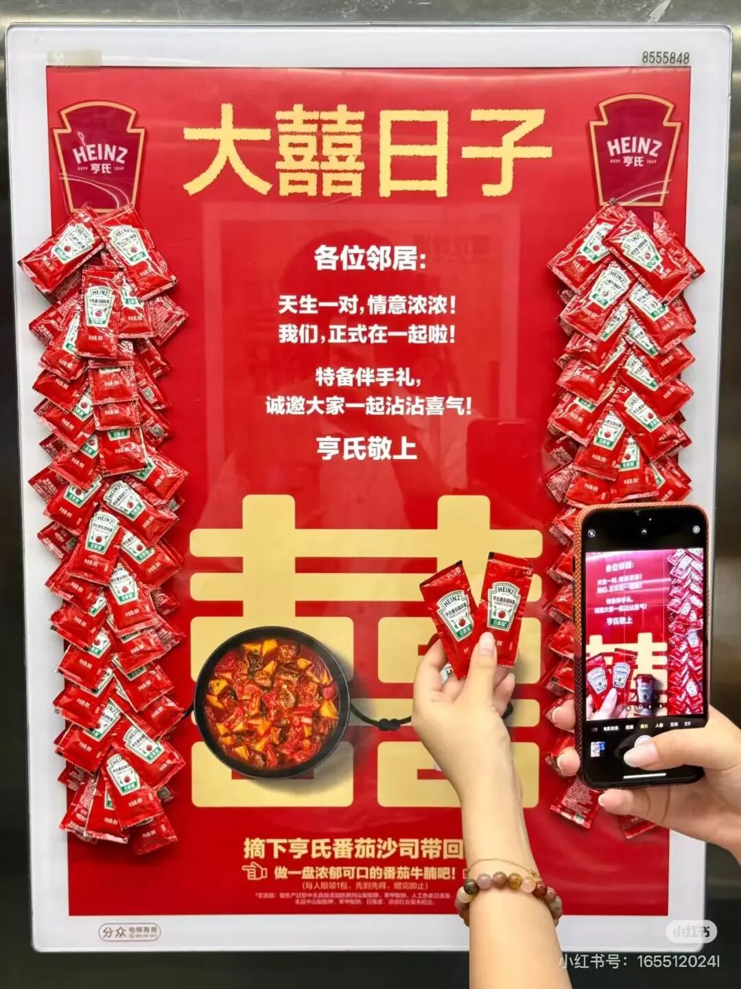 图/小红书用户,亨氏番茄酱电梯广告