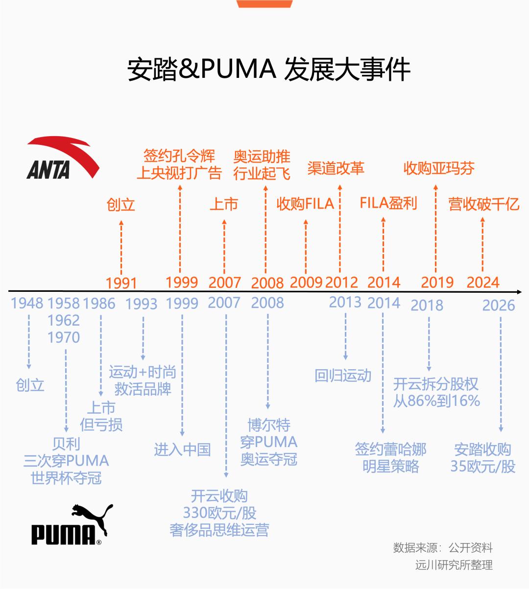 过去一整年,彪马股价跌幅近50%,寻求出售的消息不胫而走。去年8月开始,就陆续传闻彪马“接触包括安踏在内中国运动品牌及其它意向买家”,最终花落安踏,应该也不会太让业界意外。