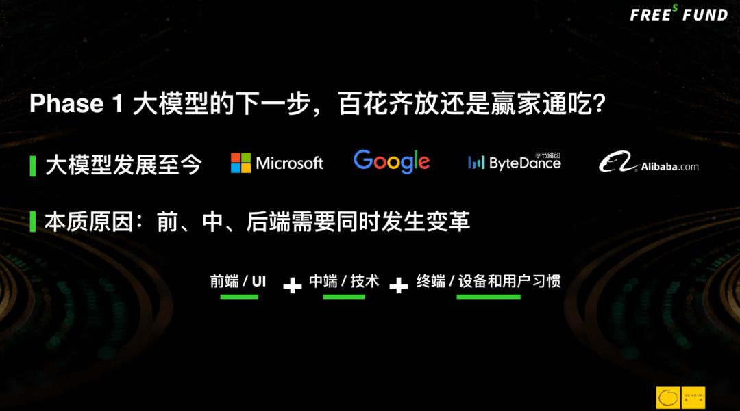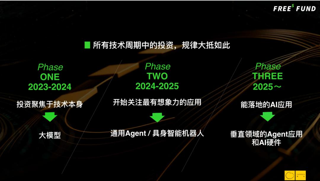 因为一切变革都是从技术创新开始,所以大家会先投技术。但技术的发展不会一直超预期,当技术上了一个小台阶、跳跃了一下之后,就变成了相对线性的发展。一旦进入线性发展,大家就开始考虑,既然有了技术突破,最有可能把技术用起来的是什么?是应用。