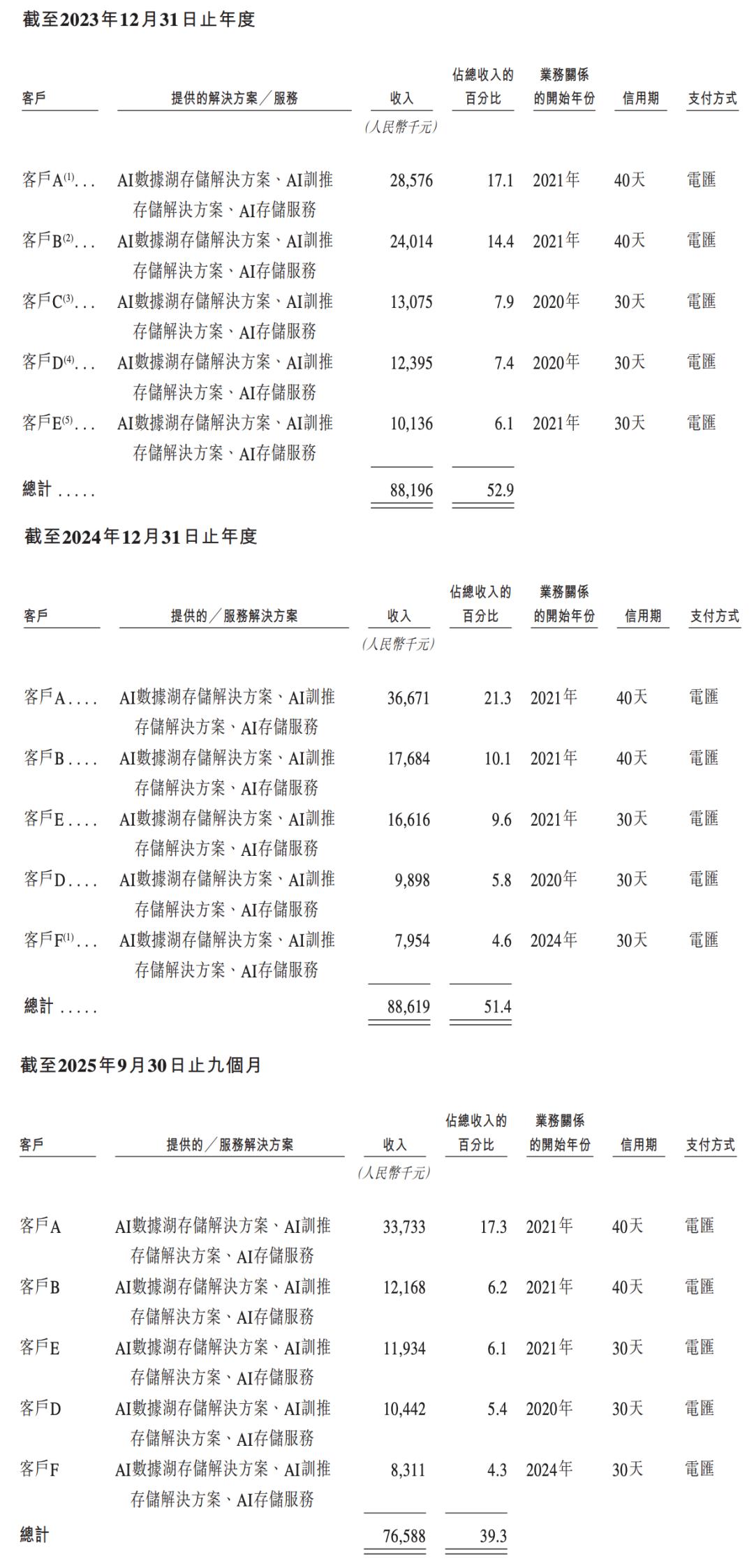 AI存储解决方案是其主要收入来源,2023年、2024年、2025年前九个月的收入占比均接近或超过80%。