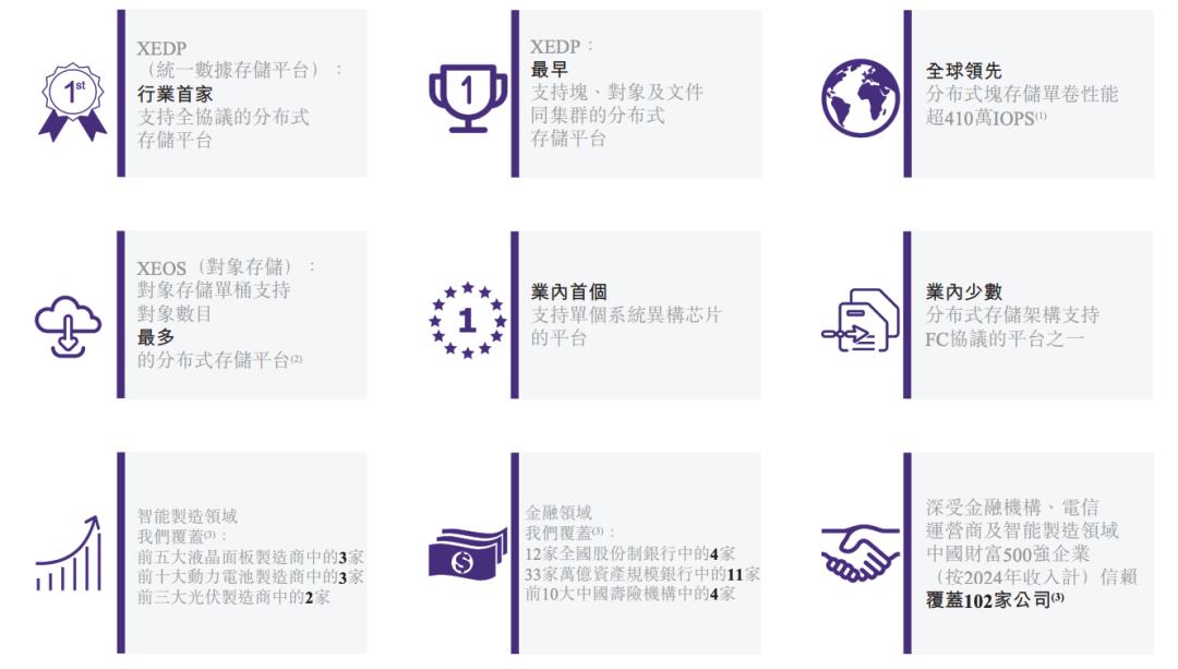 XSEA采用先进网络技术,配备高速互联网络线缆和交换机,可以实现计算机与存储设备间近乎瞬时的数据传输,招股书显示,XSEA支持的单个逻辑卷可达约410万IOPS,能为AI工作负载、向量检索及高速交易提供快速并行访问能力。