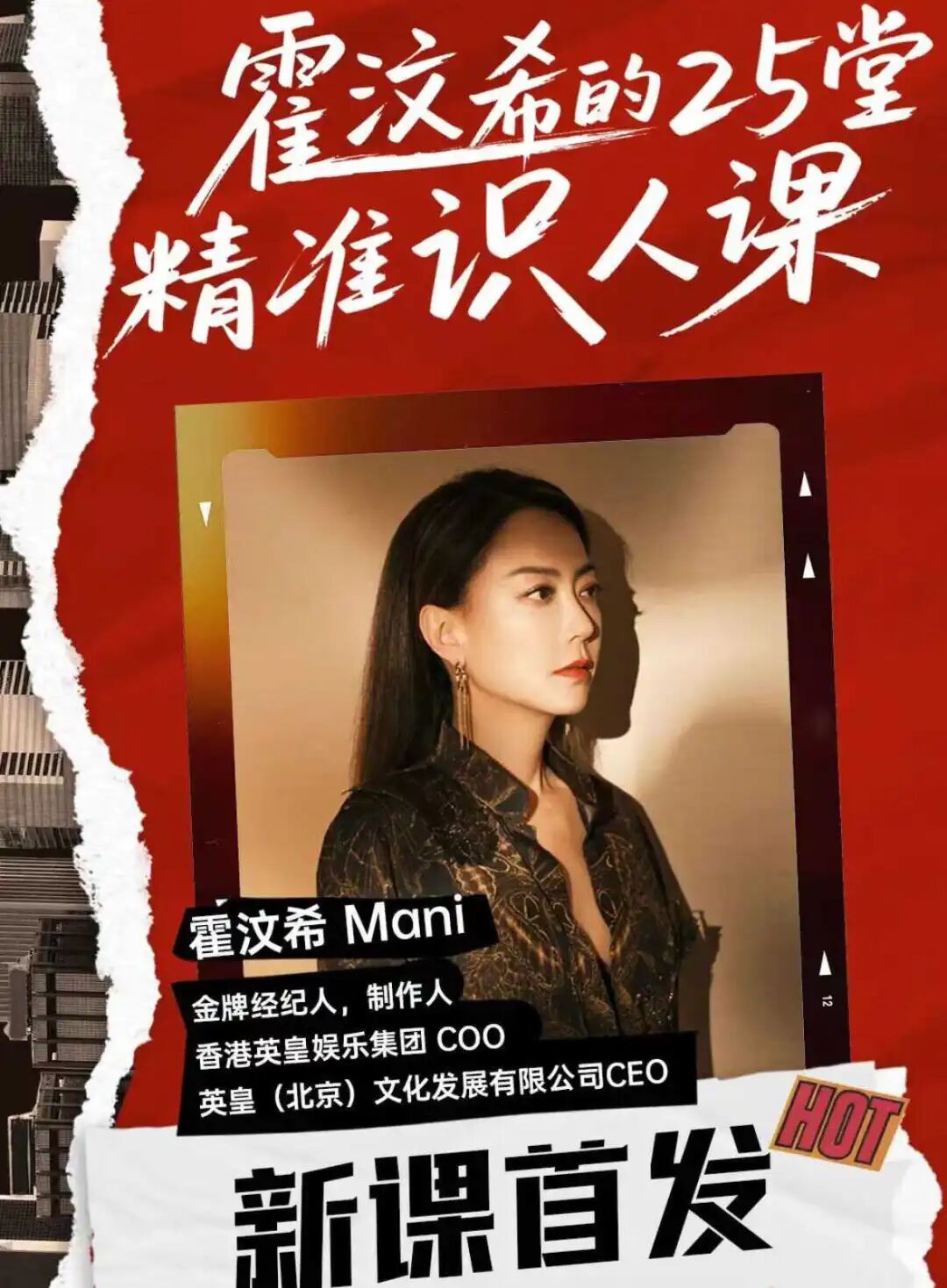 英皇金牌经纪人霍汶希在2025年年中带着自己有点“烫嘴”的普通话介绍着自己的线上课程《霍汶希的25堂识人课》。