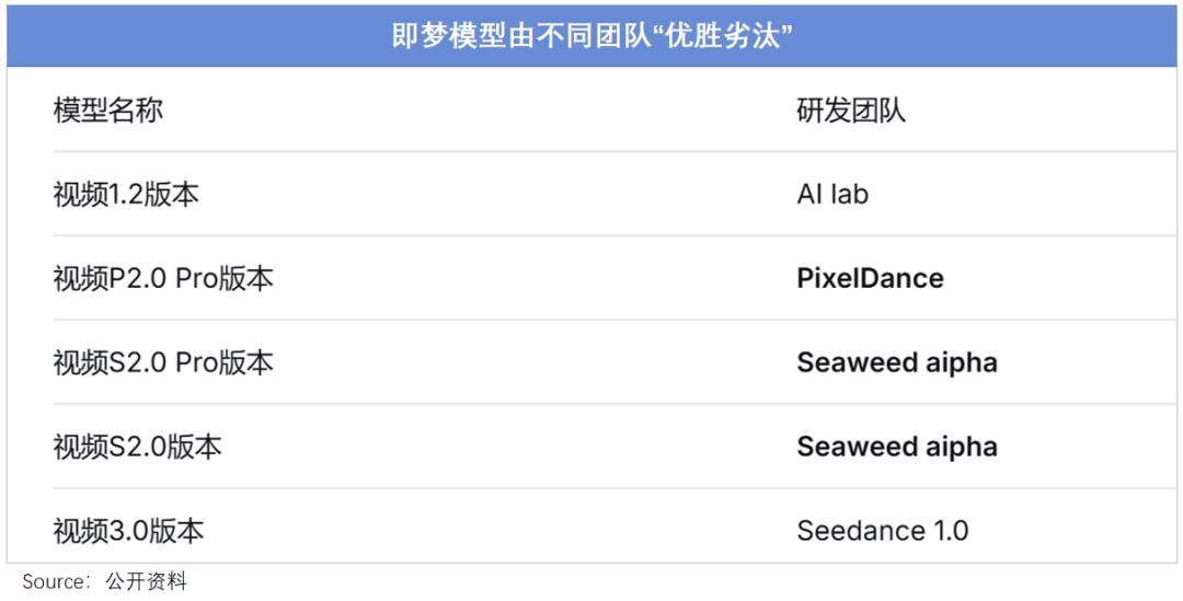 甚至不惜“内部赛马”,2025年即梦获得的算力资源同比增加300%,而同期豆包视频模块预算被削减15%;具体到即梦,目前可供用户调用的5款视频生成模型,分别来自4个不同的研发团队,哪个更优用哪个。
