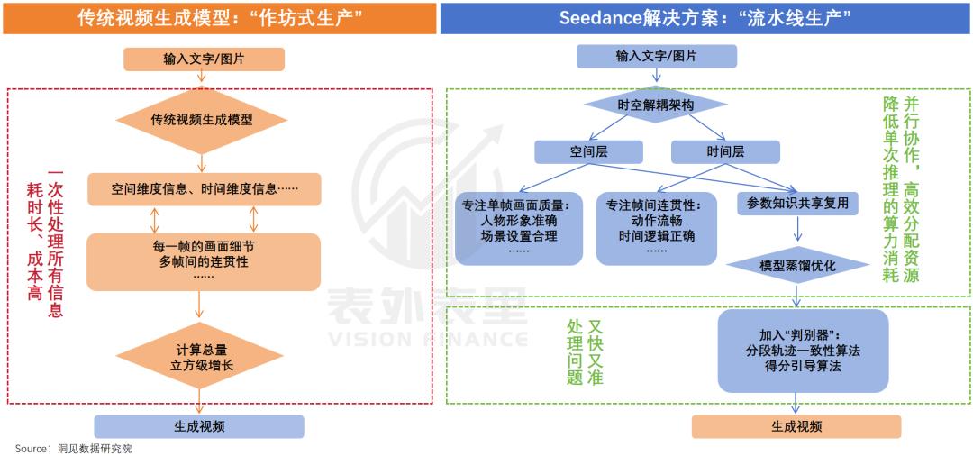 在此背景下,即梦选择了优化Seedance大模型,既实现参数和知识共享,又避免了多个模型重复维护。但视频每秒有数十帧,每帧包含数百万个像素点,每一点上都有时空信息,同步处理意味着计算量和内存需求“立方级增长”。