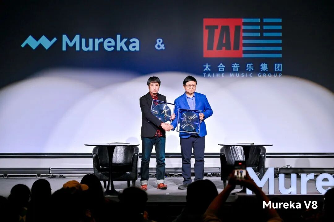 发布会现场,昆仑万维董事长兼 CEO 方汉先生和太合音乐集团副总裁詹华先生上台签约,Mureka 和太合音乐集团正式达成战略合作,AI 音乐已经作为一种全新的创作能力,将进入到主流音乐产业的制作和发行流程当中。