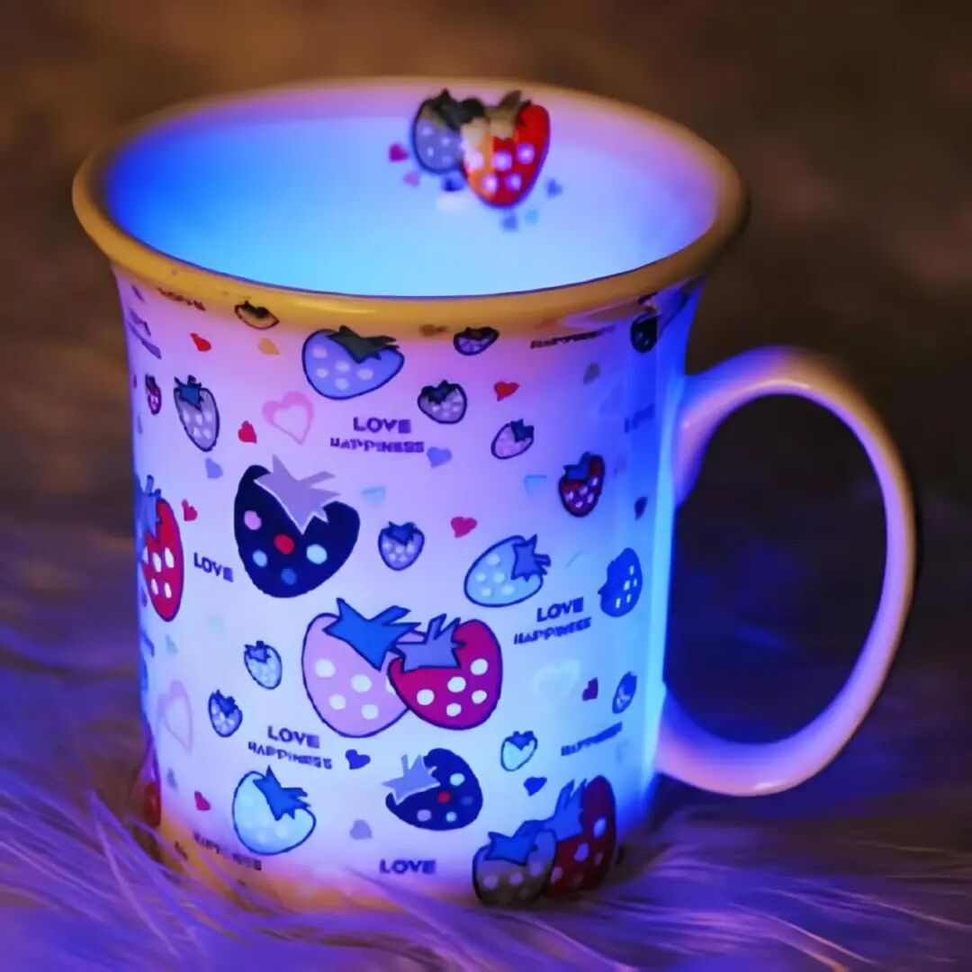 作为景德镇人,魏俊骨子里对陶瓷有着天然的亲近感。他尝试将景德镇的陶瓷工艺与义乌的小商品属性结合,在杯底嵌入LED灯,通电后杯壁透光,设计了一款“发光的陶瓷杯”。
