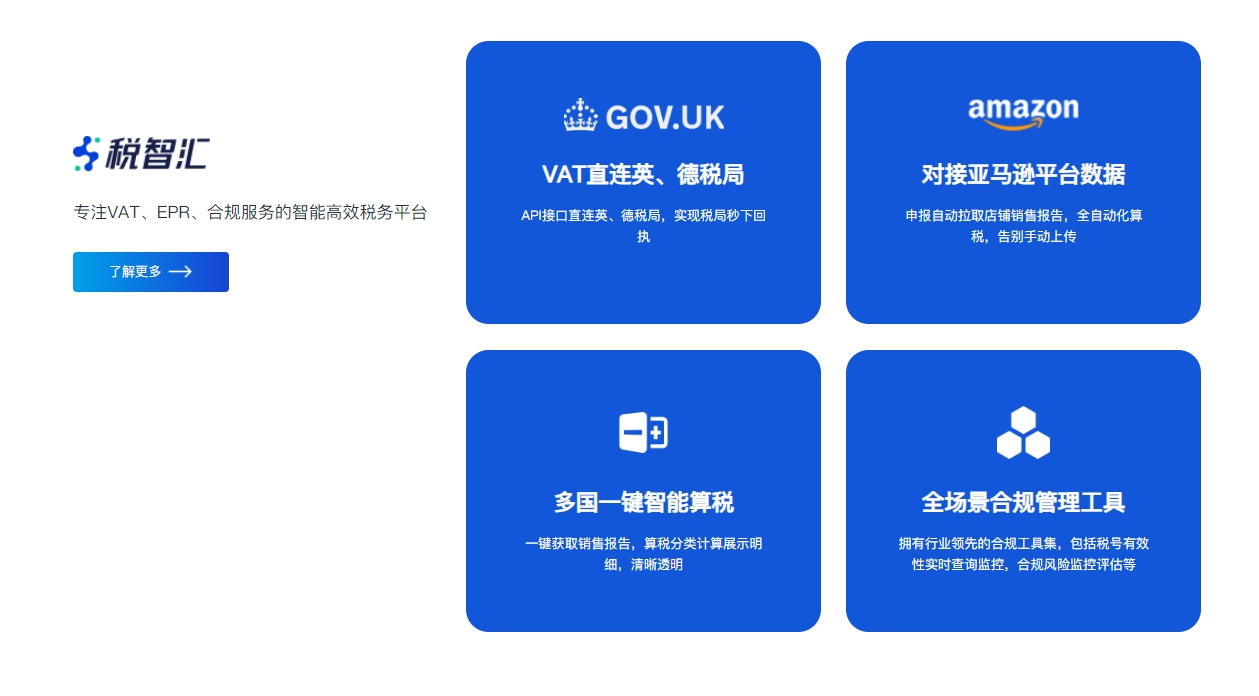 通过构建智能化资料提交体系、集成全球多国VAT/EPR算法规则、直连多国税局/环保机构,支持亚马逊、eBay等多平台一键申报,结合AI校验纠错能力实现复杂资料5分钟提交完成几乎0驳回率,30秒精准算税直连税局秒下回执,重新定义跨境合规效率。
