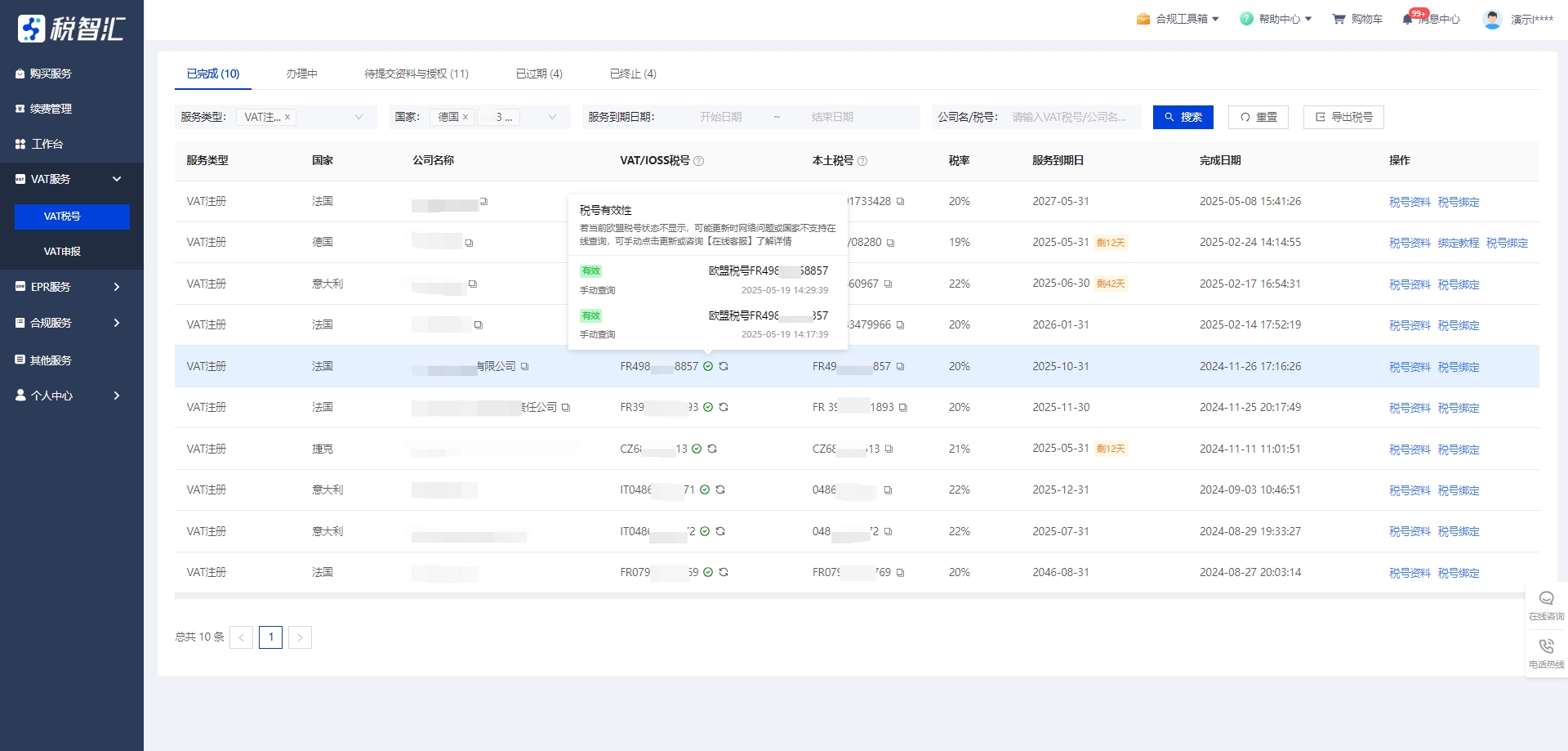 其二,海量税号成为管理“黑箱”。 企业取得多国税号后,缺乏有效工具进行集中化、可视化管理。税号状态是否正常、何时需续期、是否被当局暂停,信息零散形成监控盲区,风险潜藏。