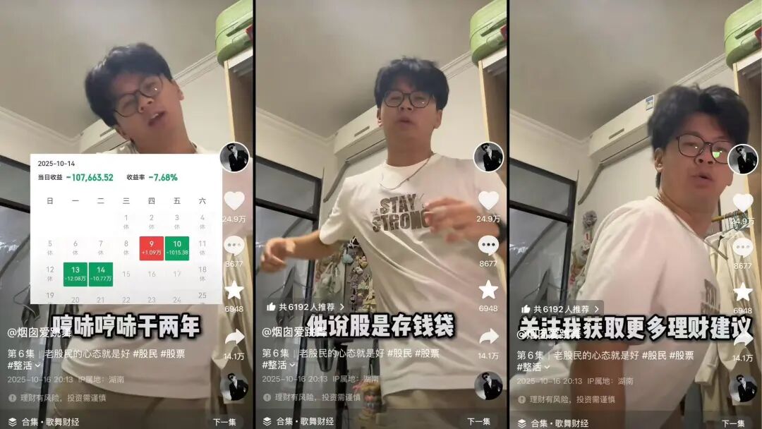 转折出现在2025年10月,@烟囱爱跳舞 发布了一条名为《老股民的心态就是好》短视频。