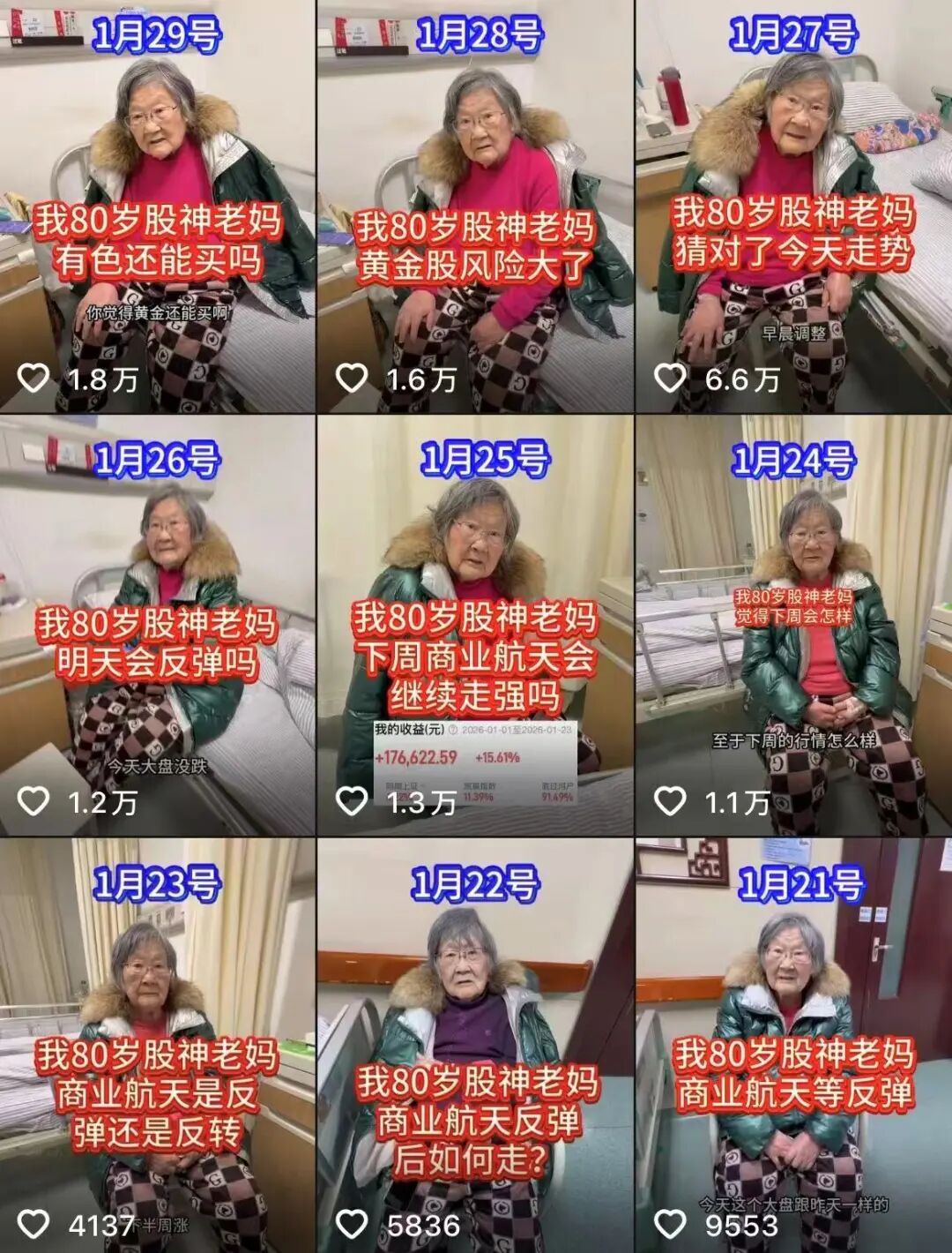 @狗总 之外,我们在财经博主@杰哥 发布的内容中,能看到80岁的“股神老妈”每天分享自己对当日大盘走势、某一板块当下情况以及未来一周内大盘如何走等领域的分析和个人看法,引来众多用户每日打卡、学习,以此作为自己后续理财方向的参考。截至目前,@杰哥 在抖音上已收获167.5万粉丝,小红书粉丝量也突破15万。